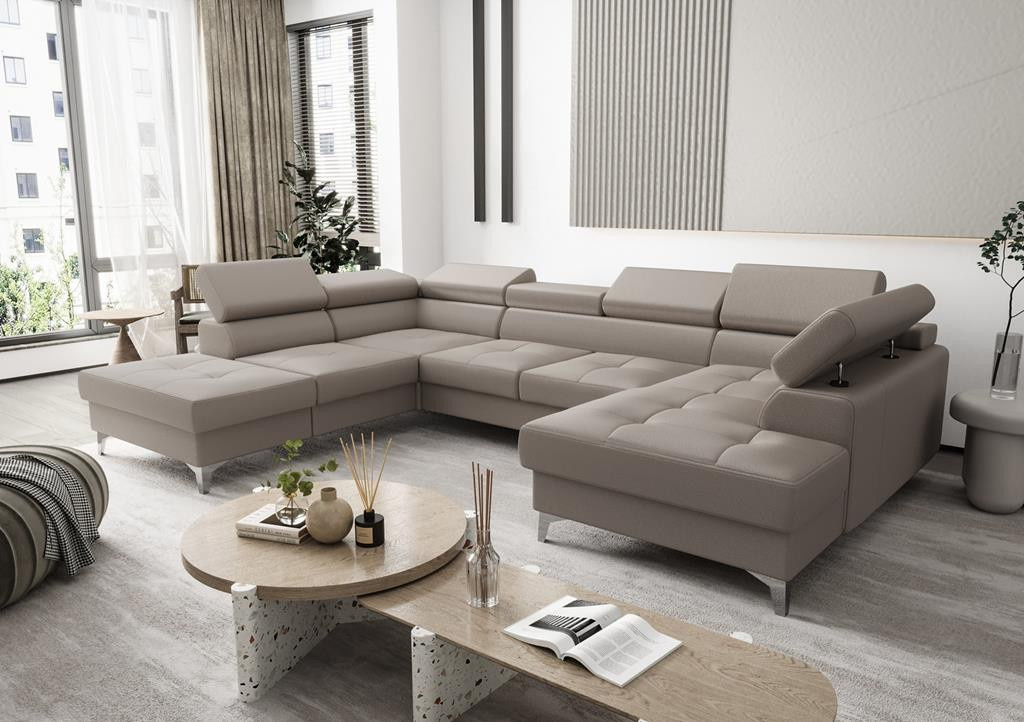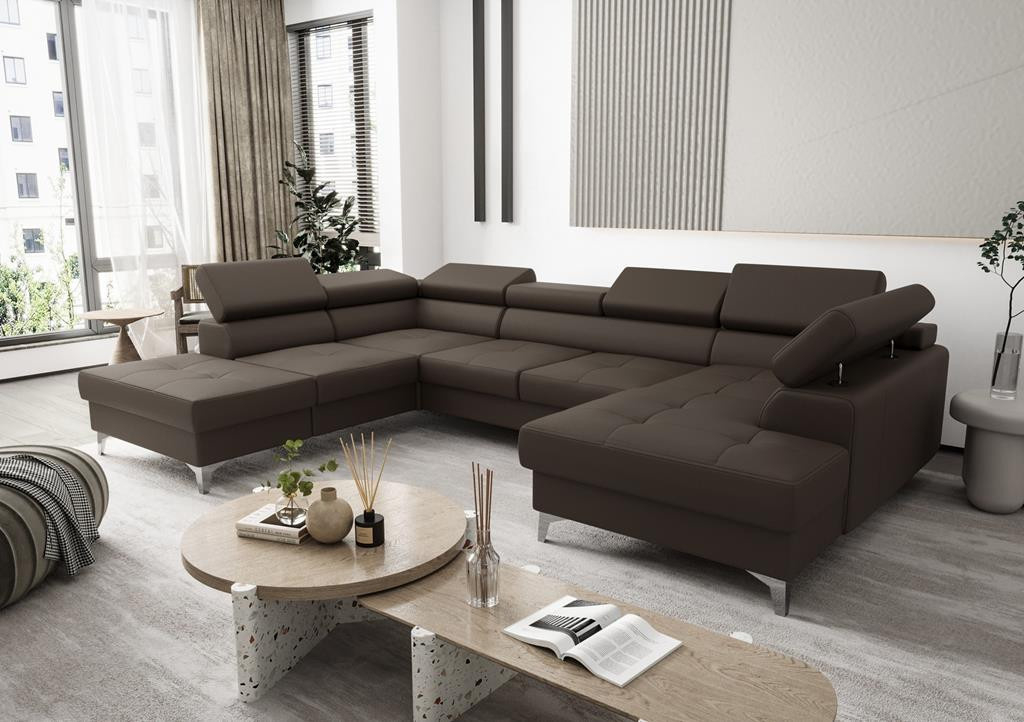 NAROŻNIK TOSCANIA MAX II 170x350x220 SKÓRA NATURALNA Narożnik Toscania Max II skóra naturalna to niezwykle elegancki mebel, dzięki któremu Twój salon otrzyma zupełnie nowy nietuzinkowy wygląd. Rogówka na wysokich nóżkach z pikowanymi siedziskami oraz regulowanymi zagłówkami doskonale wkomponuje się zarówno w nowoczesne jak również klasyczne wnętrza. Model Max II z pewnością pomieści całą rodzinę przed telewizorem czy gości na domowym przyjęciu. Jeśli szukasz niebanalnego stylu, koniecznie zatrzymaj się przy tym modelu. Nasz zespół przedstawi Ci szeroką ofertę możliwości dzięki czemu maksymalnie dopasujemy produkt do Twoich potrzeb. Sprawdź nasze pozostałe narożniki ze skóry naturalnej. Narożnik jest wyposażony w funkcję spania oraz pojemnik na pościel. Kolejnym benefitem jest budowa siedziska, dzięki której uzyskaliśmy niezwykły komfort użytkowania, gwarantują go sprężyny faliste oraz pianka wysoko-elastyczna. Wzornik skór naturalnych Zamawiając meble naszej produkcji możesz być pewien, że otrzymujesz produkt najwyższej jakości. Korzystamy jedynie ze skóry naturalnej licowej, a więc meble wykonane są z całych błamów zwierzęcych, dzięki czemu mebel zyskuje na trwałości. W porównaniu do innych producentów, my nie korzystamy z żadnych zastępczych materiałów. Nasze meble wykonane są w całości ze skóry naturalnej, także boki oraz tył (poza funkcją spania). W naszej pracy kierujemy się starannością i dbałością o najdrobniejszy szczegół. Madras jednokolorowy półmat, symbol K Madras antykowany połysk, cieniowana, symbole A, C, S Federica pół-połysk, symbol G Skóry mogą wykazywać delikatne różnice w kolorystyce, strukturze powierzchni i mogą posiadać drobne blizny. Wynika to z naturalnego środowiska, w którym żyły zwierzęta i nadaje skórze jak i meblom indywidualny charakterystyczny wygląd. Cechy te absolutnie nie mają wpływu na trwałość użytkową mebli a wręcz przeciwnie. Takie i podobne zaniki nie są wadą, a jedynie potwierdzeniem autentyczności naturalnej skóry. Mebel z funkcją rozkładania do spania okazjonalnego. Do spania codziennego rekomendujemy sofy typu DL. Funkcja spania wykonywana jest w tkaninie zastępczej. Wszystkie meble wykonywane są pod indywidualne zamówienie. Prosimy o przemyślane zakupy. Towar nie podlega zwrotowi. Meble do samodzielnego montażu.