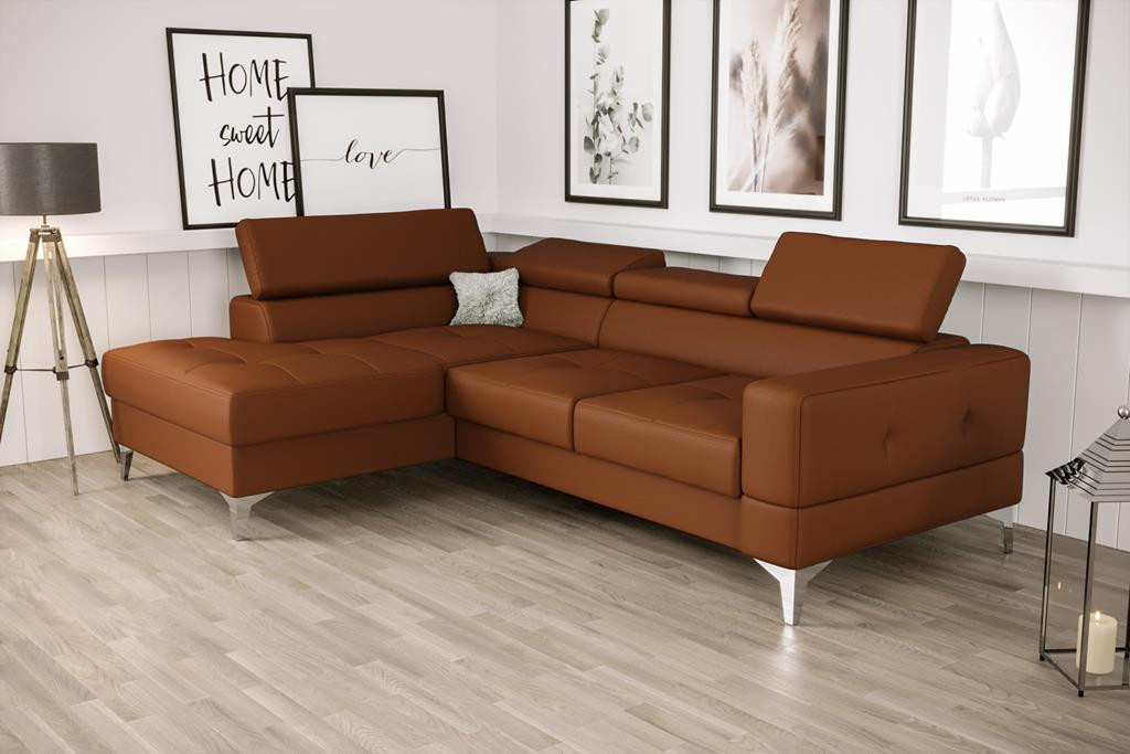 NAROŻNIK TOSCANIA MINI SKÓRA NATURALNA 170x250 CM - Odcienie brązu , prawa