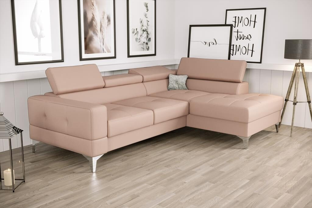 NAROŻNIK TOSCANIA MINI SKÓRA NATURALNA 170x250 CM - Odcienie różu , prawa