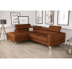 NAROŻNIK TOSCANIA MINI SKÓRA NATURALNA 170x250 CM Narożnik Toscania Mini skóra naturalna to kolejny element kolekcji mebli tapicerowanych Toscania. Powstała ona z myślą o wszystkich, którzy cenią sobie nowoczesny design i jednocześnie oczekują wysokiego komfortu. Funkcję spania rozkładaną na automacie Delfin łatwo zmienisz sofę w łóżko dla gości, zapewniając wygodne miejsce do wypoczynku w kilka chwil. Pojemnik, wykonany w całości z trwałej płyty laminowanej, oferuje praktyczne rozwiązanie na przechowywanie pościeli lub innych przedmiotów, pomagając utrzymać porządek. Dwie wersje nóg do wyboru – metalowe szpilki w kolorze srebrnym lub czarnym. Pozwalają na dopasowanie mebla do indywidualnych potrzeb i stylistyki wnętrza. Nogi o wysokości 13 cm nie tylko nadają elegancji, ale także ułatwiają sprzątanie przy użyciu robotów odkurzających typu I-Robot. Regulowane zagłówki z możliwością dostosowania do indywidualnych potrzeb gwarantują maksymalny komfort, podczas gdy zagłówek narożny stały zapewnia stabilność i wygodę. Ozdobne przeszycia oraz starannie wykonane pikowanie na siedziskach i bokach dodają sofie elegancji i podkreślają jej wysoką jakość. Siedzisko stworzone z użyciem sprężyn falistych oraz nowoczesnej pianki T35+HR. Zapewnia to doskonałe podparcie, komfort i trwałość, czyniąc mebel idealnym wyborem dla wymagających użytkowników. Sprawdź pozostałe narożniki ze skóry naturalnej. Wykonanie Wszystkie elementy produktu narożnik Toscania Mini zostały obszyte grubym szwem, co stanowi ozdobę i wzmacnia połączenia tkanin. Siedziska zbudowaliśmy na sprężynach falistych oraz piance wysoko elastycznej (połączenie najlepszych jakościowo pianek T35 i HR), co sprawiło, że są one średnio miękkie a jednocześnie bardzo wytrzymałe. Stelaże wykonujemy z drewna i płyty meblowej, dlatego nasze meble są solidnie wykonane, a cena idzie zawsze w parze z jakością. Wzornik skór naturalnych: Madras jednokolorowy półmat, symbol K Madras antykowany połysk, cieniowana, symbole A, C, S Federica pół-połysk, symbol G Skóry mogą wykazywać delikatne różnice w kolorystyce, strukturze powierzchni i mogą posiadać drobne blizny. Wynika to z naturalnego środowiska, w którym żyły zwierzęta i nadaje skórze jak i meblom indywidualny charakterystyczny. Prosimy o przemyślane zakupy. Meble ze skóry naturalnej są wykonywane na zamówienie indywidualne i nie podlegają zwrotowi. Wirtualna galeria Już teraz możesz obejrzeć nasze realizacje bez wychodzenia z domu, ponieważ udostępniliśmy dla Ciebie GALERIĘ. Miłego oglądania! Meble do samodzielnego montażu. Mebel z funkcją rozkładania do spania okazjonalnego. Do spania codziennego rekomendujemy sofy typu DL. Funkcja spania wykonywana jest w tkaninie zastępczej.