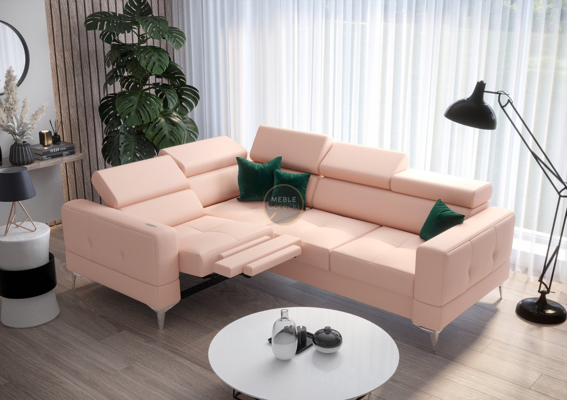 NAROŻNIK TOSCANIA RELAX Z FUNKCJĄ SPANIA 185X250 SKÓRA NATURALNA - Odcienie różu , lewa
