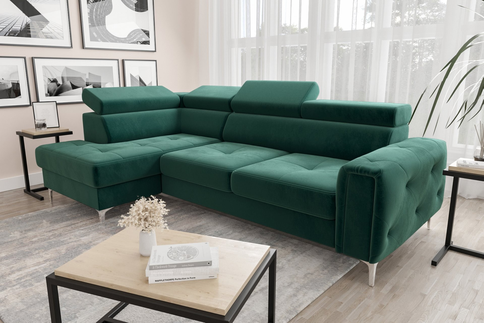 NAROŻNIK Z FUNKCJĄ SPANIA ORION 165X255 - Odcienie zieleni , lewa