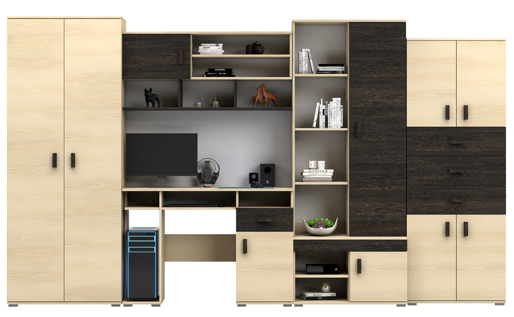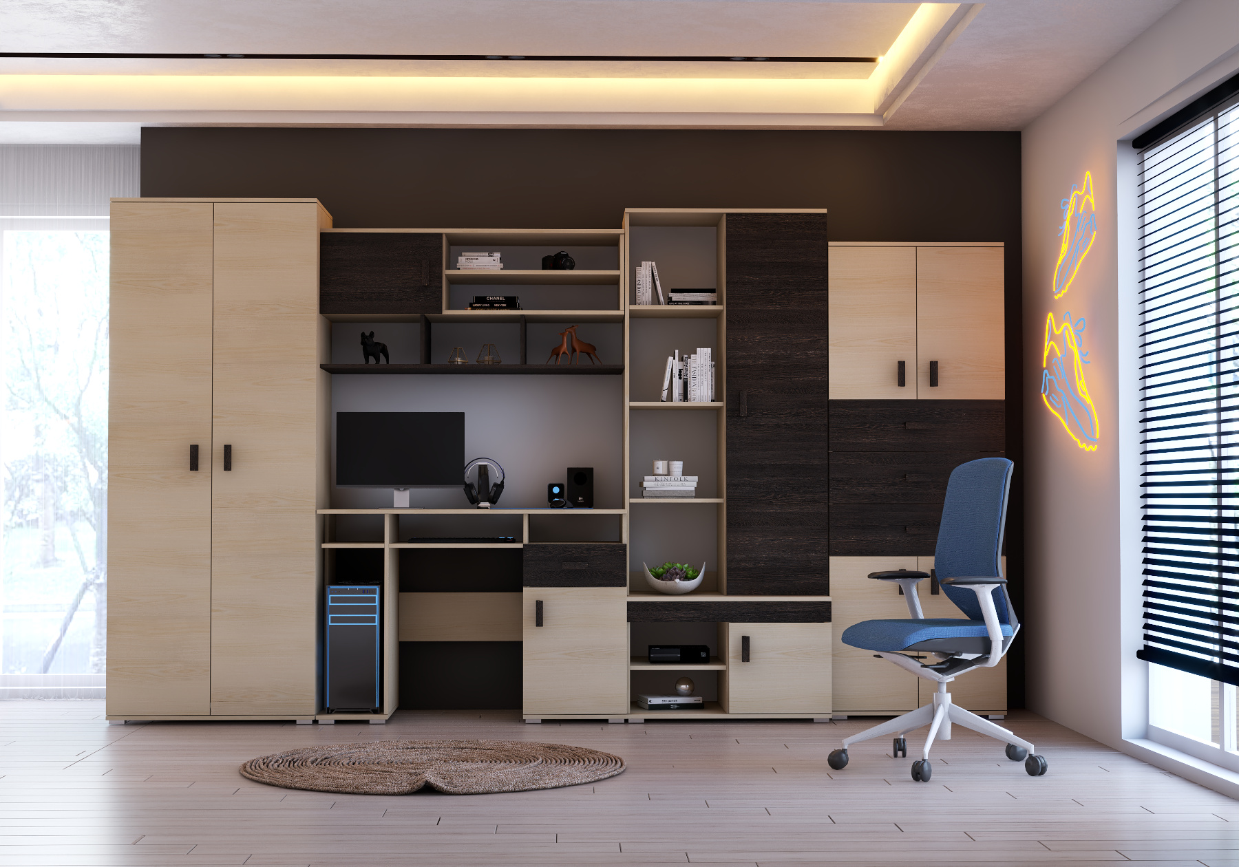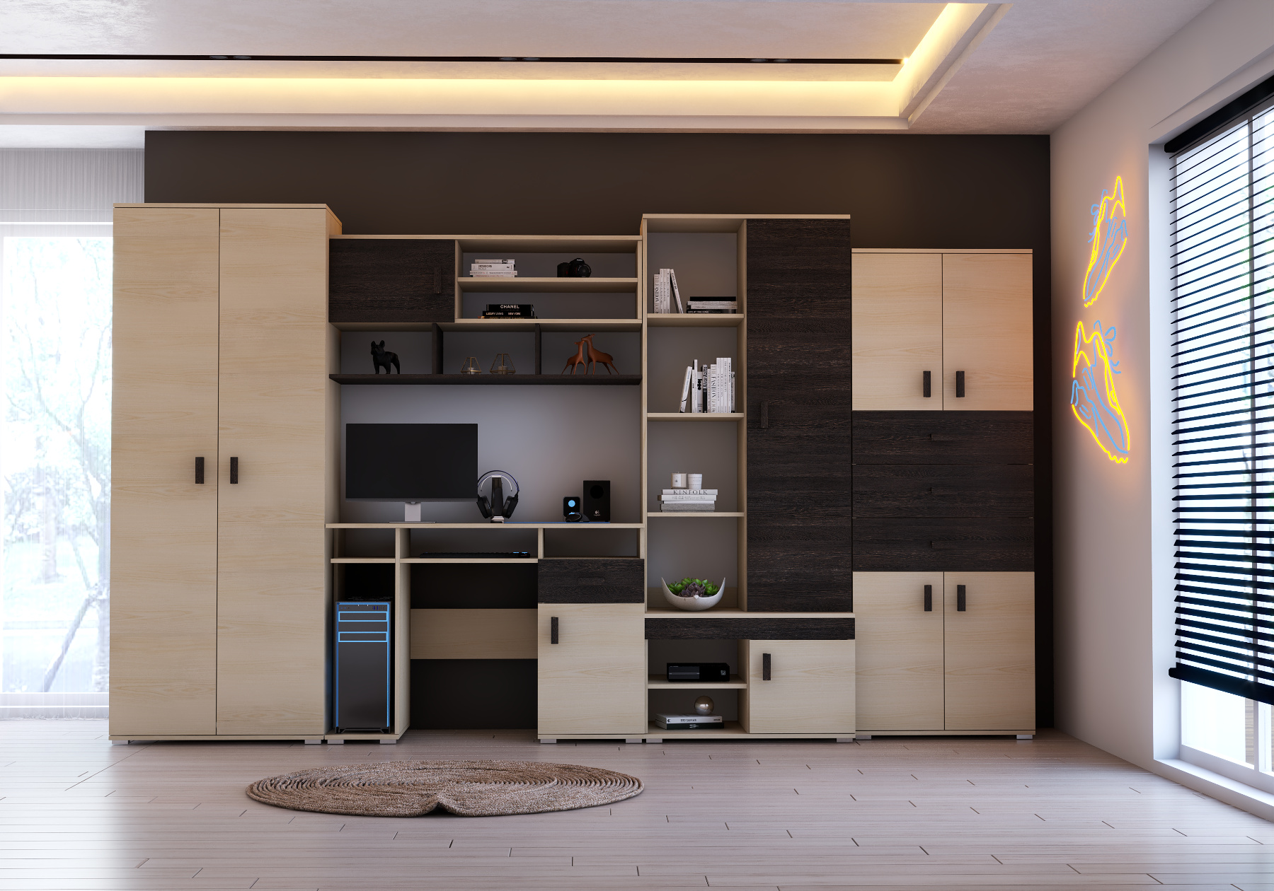 A Nelly bútorösszeállítás elegendő tárolóhelyet biztosít, és a nyitott könyvespolc kiemeli a rajta elhelyezett dekorációkat, egyedi jelleget kölcsönözve a szobának.
