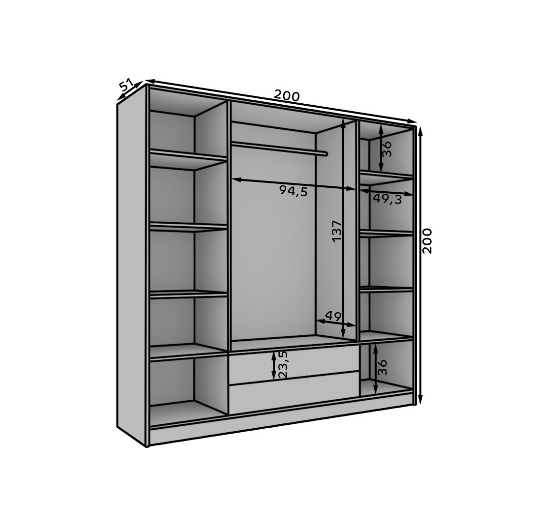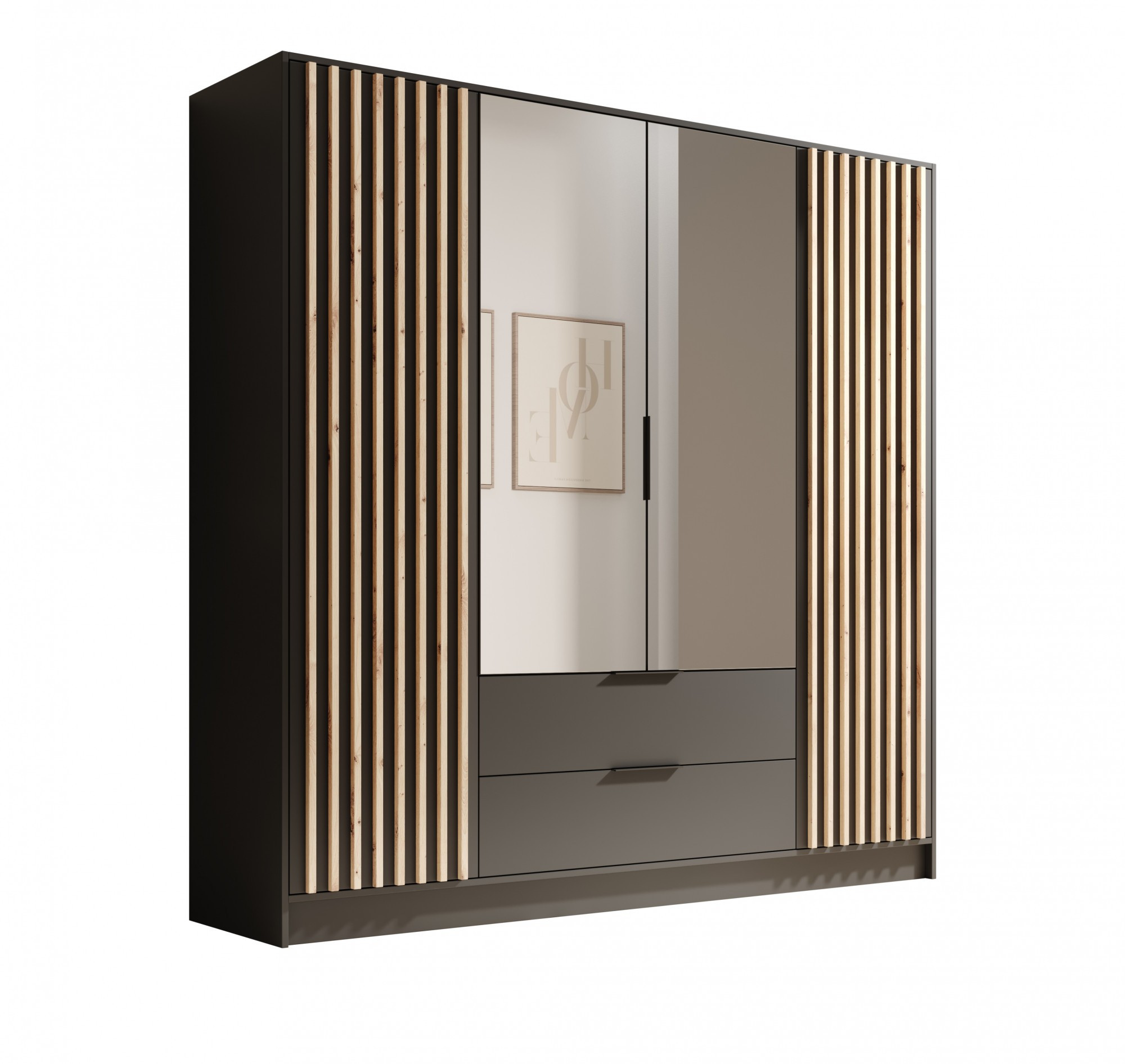 Neri 200 gardróbszekrény tükrökkel Fekete+Fekete