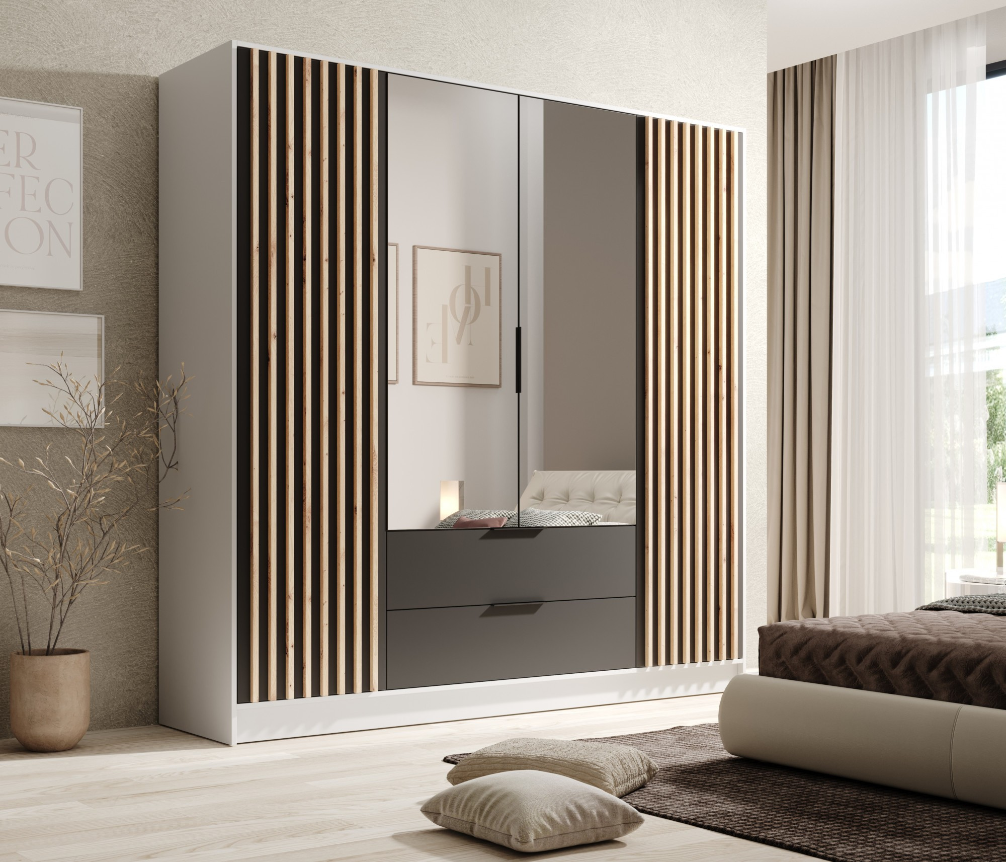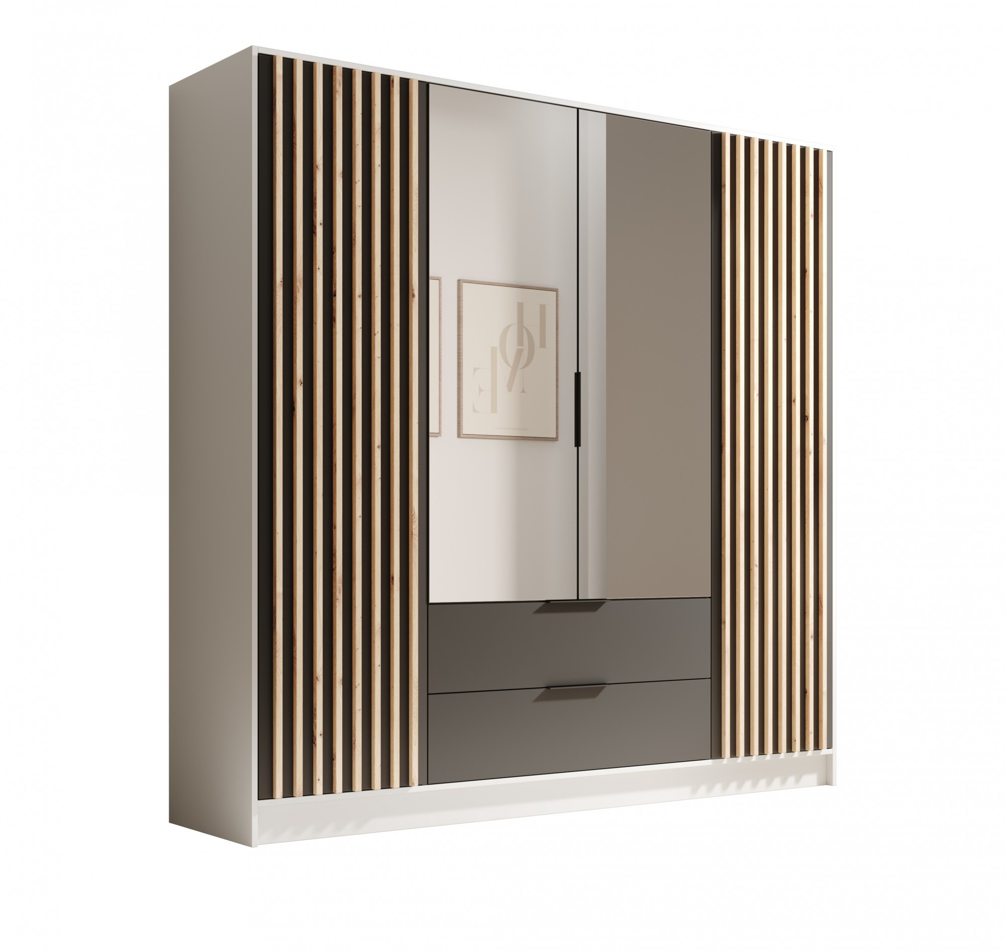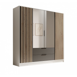 Neri 200 tolóajtós és tükrös ruhásszekrény Fehér+Fekete