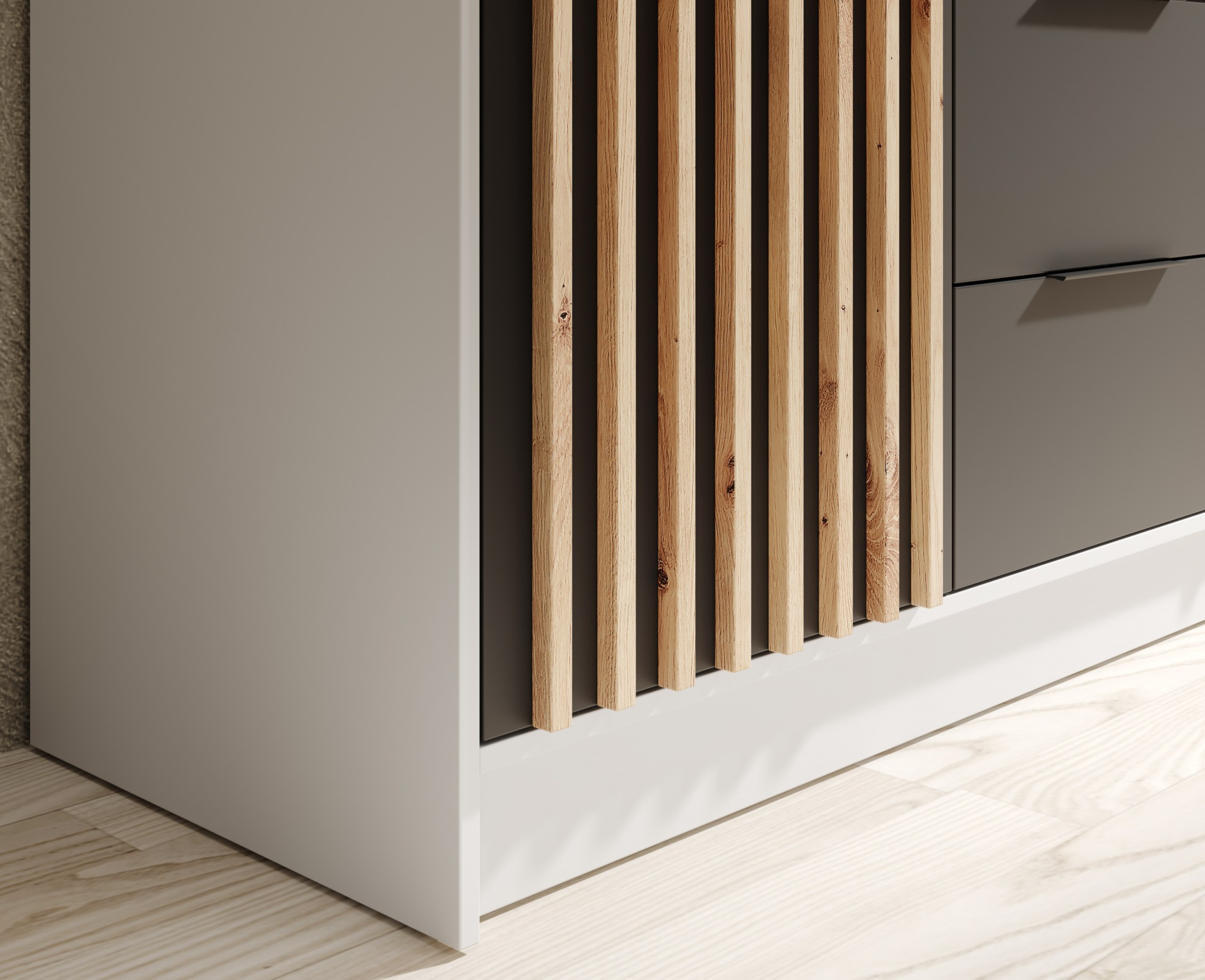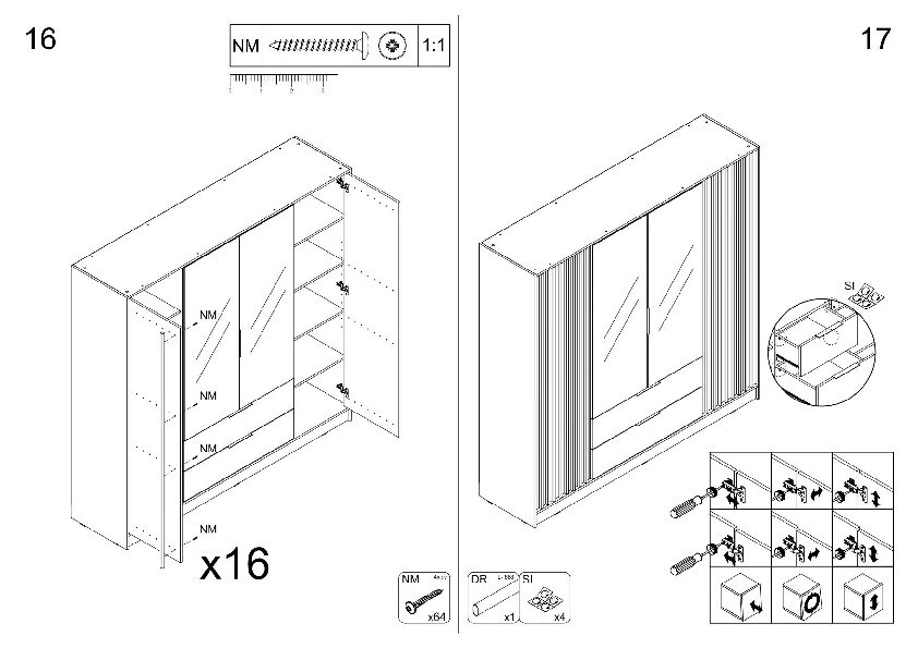 Neri ruhásszekrény – elegáns és funkcionális szekrény, amely tökéletesen illeszkedik a modern és klasszikus belső terekbe egyaránt. A színek széles választékának köszönhetően mindenki megtalálja azt a verziót, amely tökéletesen illeszkedik a stílusához. A Neri szekrény dekoratív lamellákkal rendelkeznek az elülső oldalakon és egy nagy tükörrel, amely optikailag megnöveli a teret és könnyedséget kölcsönöz neki.A szekrény három praktikus méretben kaphatók:- 100 cm – kompakt, ideális kisebb terekhez,- 150 cm – kiváló kompromisszum a tér és a méret között,- 200 cm – tágas változat, ideális nagyobb ruhatár tárolására.Mindegyik verziót a felhasználó kényelmét és az esztétikát szem előtt tartva tervezték, amely gazdagítja bármely hálószobát vagy gardróbot.