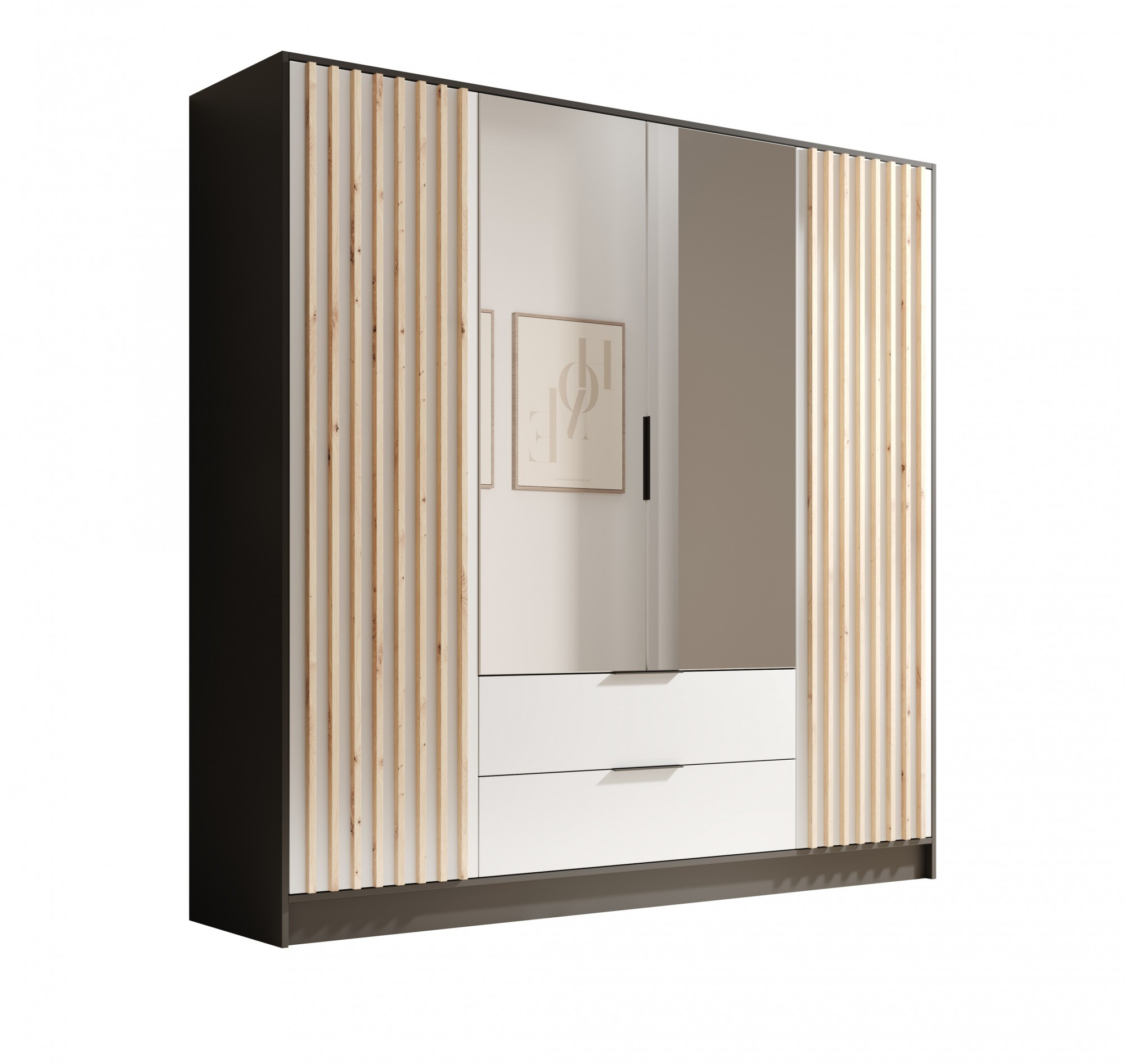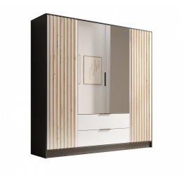 Neri 200 tolóajtós és tükrös ruhásszekrény Fekete+Fehér