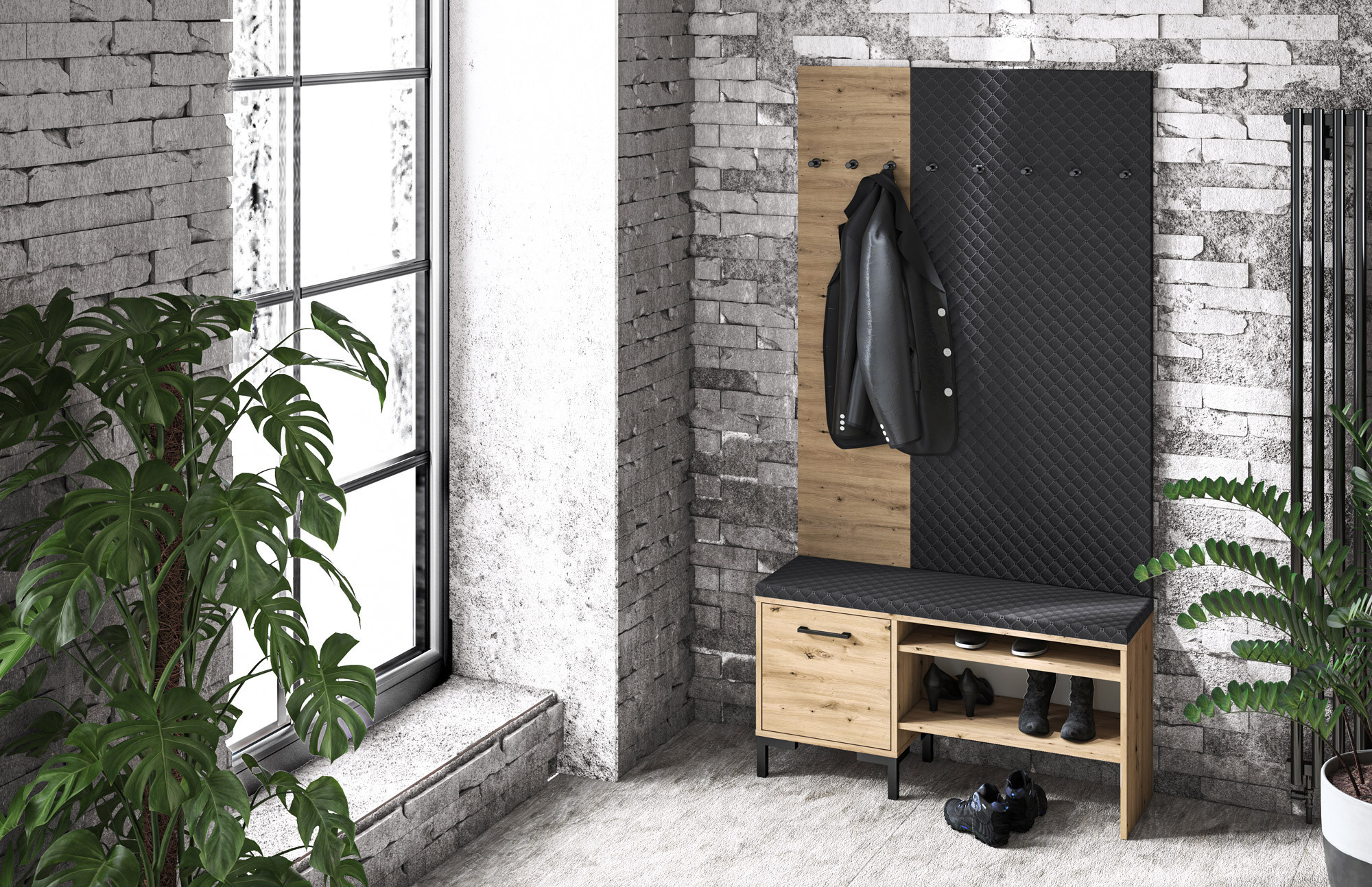 Komoda NEVIO 13 to niezwykle praktyczne rozwiązanie do każdego wnętrza. Pięknie usłojony dekor w kolorze Dąb Artisan oraz czarne elementy w postaci uchwytów i nóżek tworzą nietuzinkowe połączenie. Komoda dzięki swojej funkcjonalności jest doskonałym miejscem do ekspozycji zdjęć, czy pamiątek rodzinnych. Bardzo pojemne wnęki są idealnym rozwiązaniem do umieszczenia ubrań. Ponadto komoda posiada trzy szuflady, które bez wątpienia sprawdzą się w przechowywaniu np. akcesoriów. Dodatkowo utrzymanie czystości nigdy nie było tak łatwe, dzięki wysokim nóżkom pod którymi zmieści się końcówka odkurzacza klasycznego, robot jeżdżący czy mop.