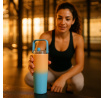 A legfeljebb 900 ml kapacitású termoszbögre szövetségesünk lesz a szervezet megfelelő hidratáltságának kérdésében. A fémből készült bögre olyan fejlesztésekkel van ellátva, mint a műanyag fogantyú, a fedél és a nyitható ivócsőr, amely lehetővé teszi, hogy könnyen igyunk anélkül, hogy le kellene csavarni a fedelet. A divatos színű bögre illeszkedik a nyári trendekhez. A bögre 4 órán keresztül tartja a meleget, míg a hideget 6 órán keresztül.