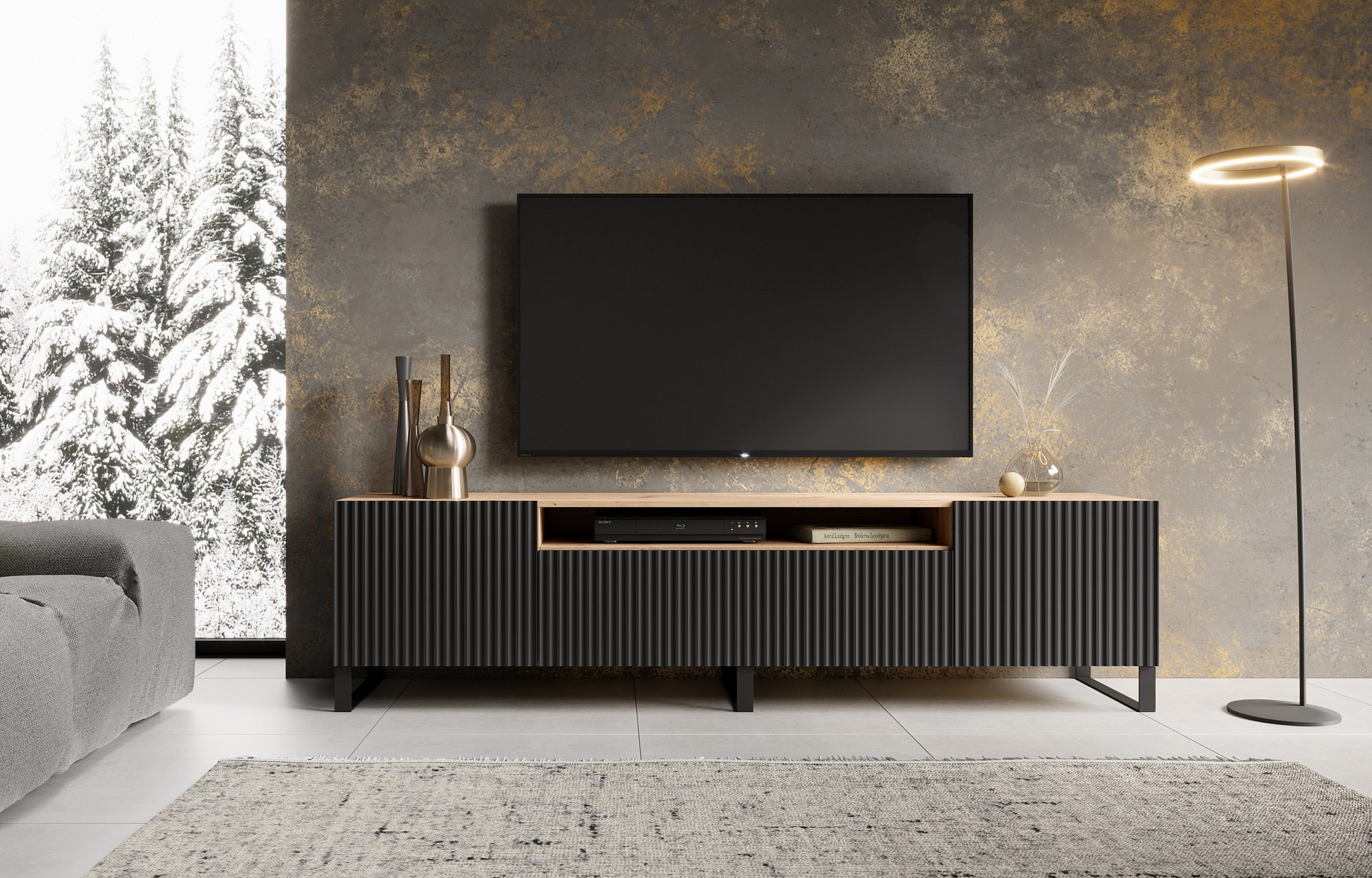 A Noemi RTV egy modern, elegáns és funkcionális televíziós szekrény, amely ideális a modern belső terekben való használatra. Egyedi tulajdonsága a bordázott kivitel, amely karaktert és textúrát kölcsönöz a bútornak. A szekrény úgy lett tervezve, hogy megfelelő rekeszeket és polcokat tartalmazzon különféle elektronikus berendezések tárolására, beleértve a televíziót, a set-top boxot, a játékkonzolt és sok más eszközt.