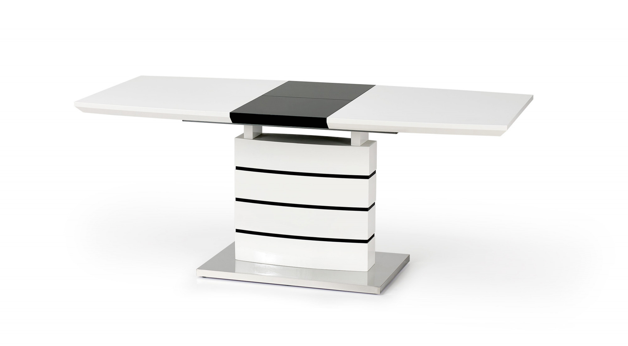 kihúzható asztal, méretek: 140-180/80/76 cm, anyag: lakkozott MDF, szín: fehér és fekete
