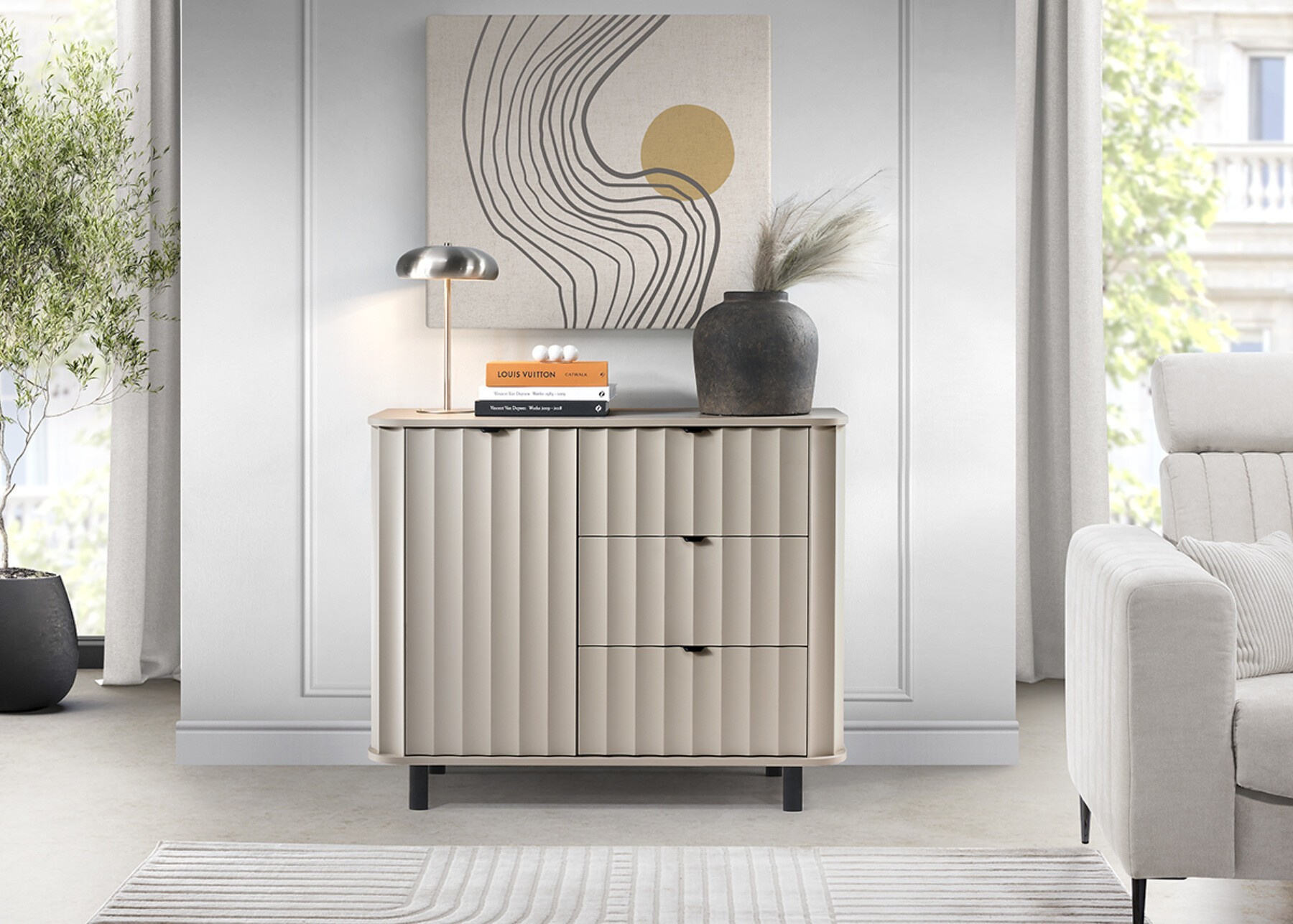A NOVADO kollekció egy olyan kollekció, amely ötvözi a modern vonalakat a finom részletekkel, mint például a lekerekített felső lapok, a könnyű bútorváz és a karcsú fém lábak, amelyek egyedi ritmust kölcsönöznek a bútornak.