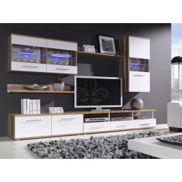 : korpus je v provedení Ořech Baltimor v kombinaci s dvířky z bílého lesku