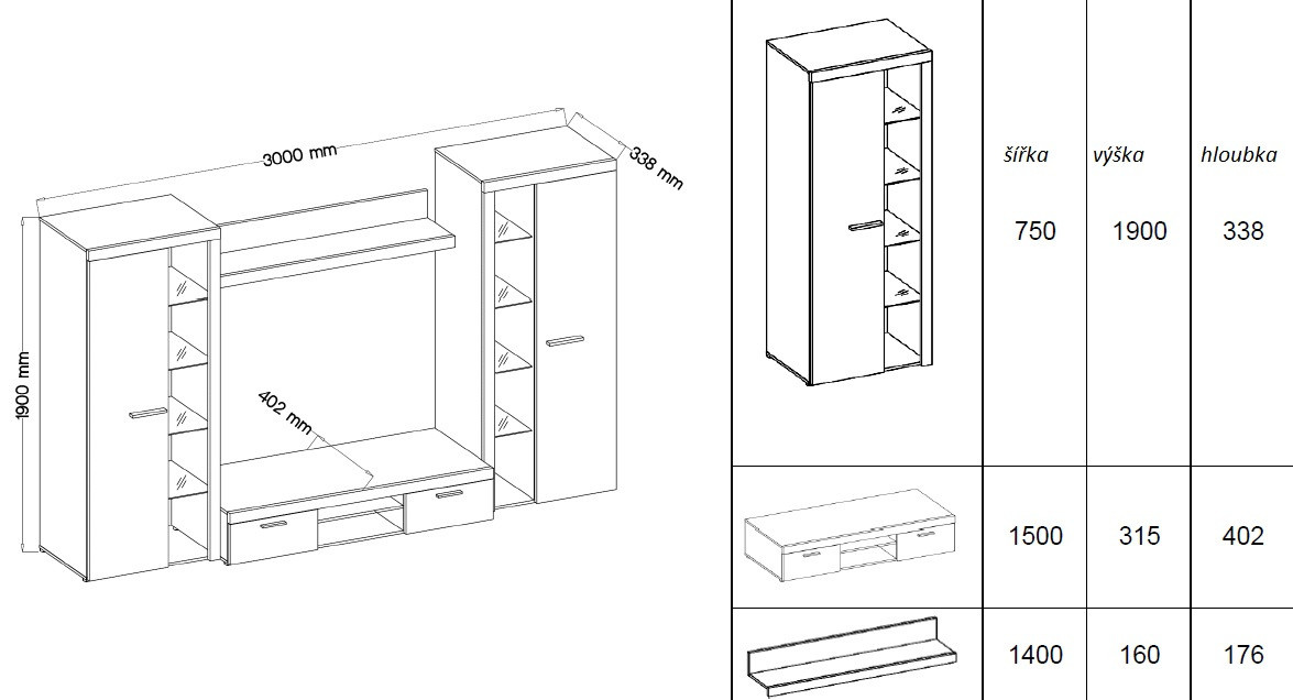 Obývací stěna Rizo patří mezi oblíbené modely moderního nábytku. Nabízí dostatek úložného prostoru a je vhodná i do menších pokojů. Stěna je vyrobena z lamina, které je odolné a snadné na údržbu. Ke stěně nabízíme i několik typů komod ve stejném provedení. Všechny prvky této sestavy jsou dodávány v demontu. Součástí je montážní plánek včetně všech potřebných spojovacích materiálů. Cena je uvedena za bytovou stěnu vyobrazenou na úvodní fotografii, bez komod, doplňků a dekorací. LED osvětlení není v ceně sestavy. Vlivem nastavení monitorů, nebo displejů telefonů, se zobrazení barev na fotograii může od skutečnosti lišit.