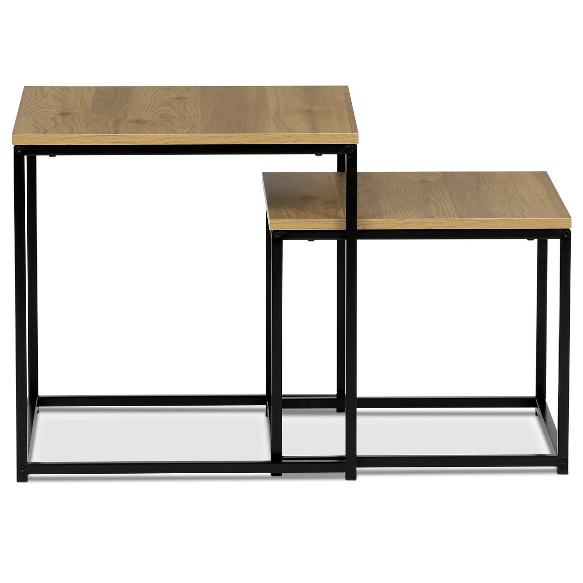 Sada 2 odkládacích stolků Autronic je mnohem víc než pouhé odkládací stolky - ztělesňuje harmonii praktičnosti, stylu a sofistikovanosti. Tyto stolky s dekorem divokého dubu, který zdobí jejich robustní povrch z materiálu MDF, poskytují vynikající kombinaci estetického potěšení a funkčnosti pro každé prostředí. Deska stolku dokresluje přírodní vibrace dekoru divokého dubu a dodá vašemu pokoji nebo kanceláři klidnou atmosféru. Inspirace designu Autronic vychází z motivů industriálního stylu. Stoly se pyšní černými kovovými nohami kruhového tvaru, které nejen zajišťují stabilitu, ale také přispívají k odvážnému a průkopnickému vizuálnímu dojmu ze soupravy. Deska čtvercového tvaru poskytuje velkorysý úložný prostor a zároveň vyzařuje moderní a špičkový vzhled. Investice do kusů nábytku Autronic je zárukou bezkonkurenční kvality a dlouhé životnosti. Ať už zařizujete firemní prostory, nebo zvelebujete svůj domov, tyto univerzální kousky od společnosti Autronic zaručeně skvěle uspokojí vaše potřeby.