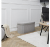 Az összecsukható pad ideális bútordarab egy kisebb előszobába. A pad nemcsak ülőhelyként szolgál, hanem tárolóhelyként is cipők, kiegészítők, takarók vagy párnák és akár játékok számára. A nyitható ülésnek köszönhetően a puffba elrejthetjük azokat a tárgyakat, amelyek jelenléte a felszínen nem szükséges. Az összecsukható pad MDF-ből, kárpitozó habból és 100% poliészter anyagból készült. Az összecsukható alap lehetővé teszi a pad elrejtését, amikor ideiglenesen nincs rá szükségünk. Kartondoboz méretei: 39,5x14,5x76cm. Max 2 db kartononként
