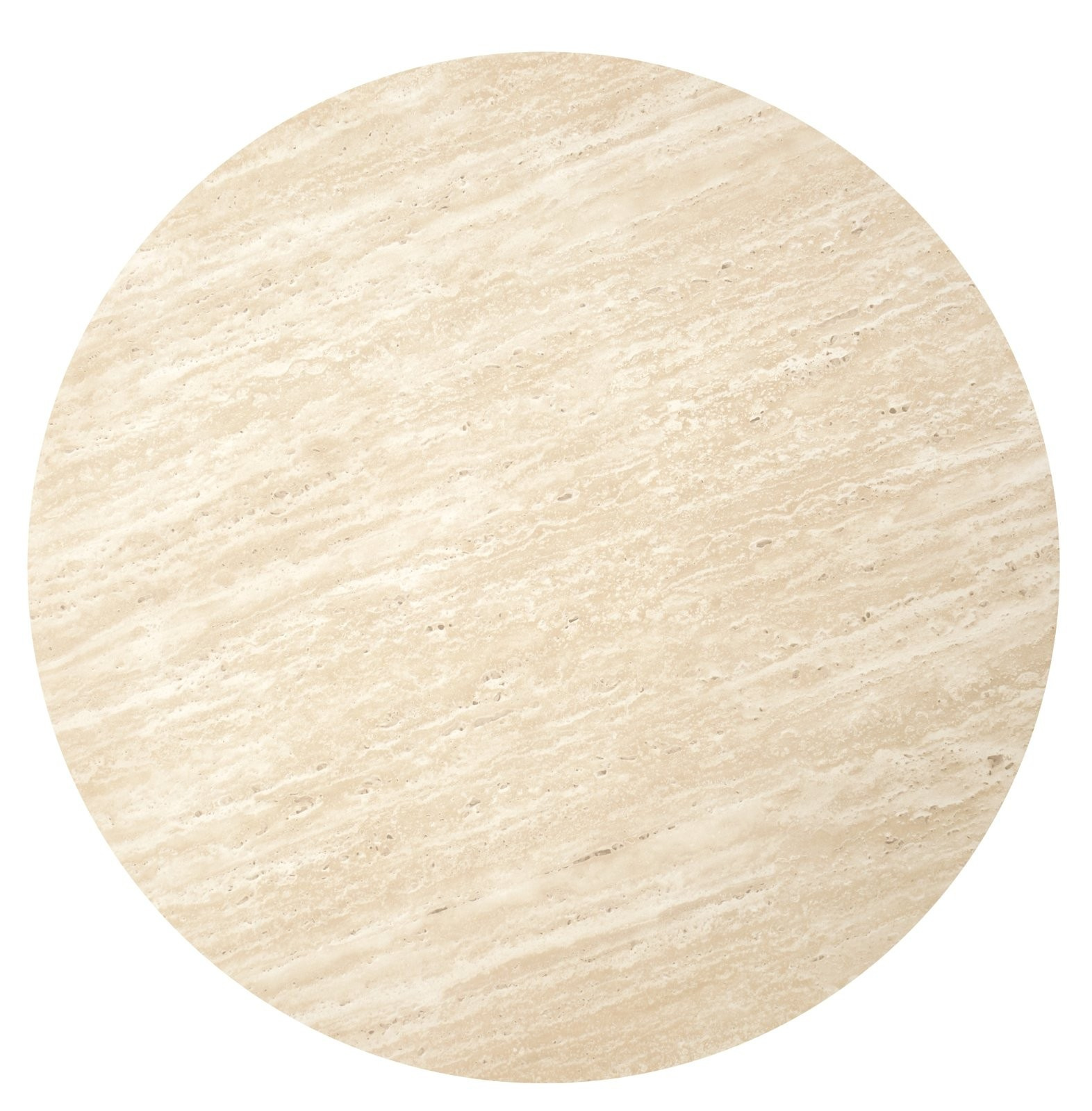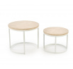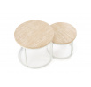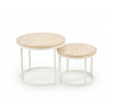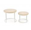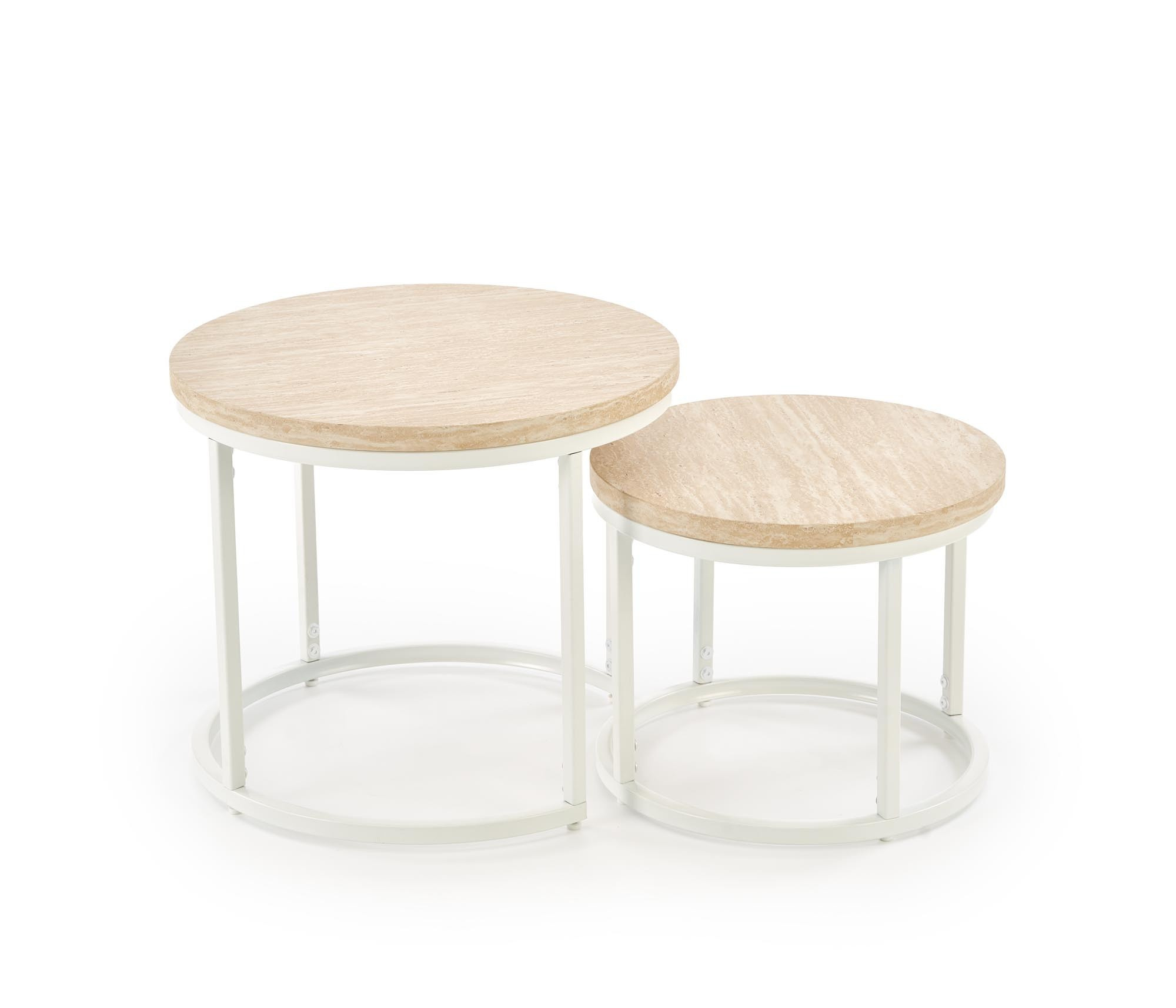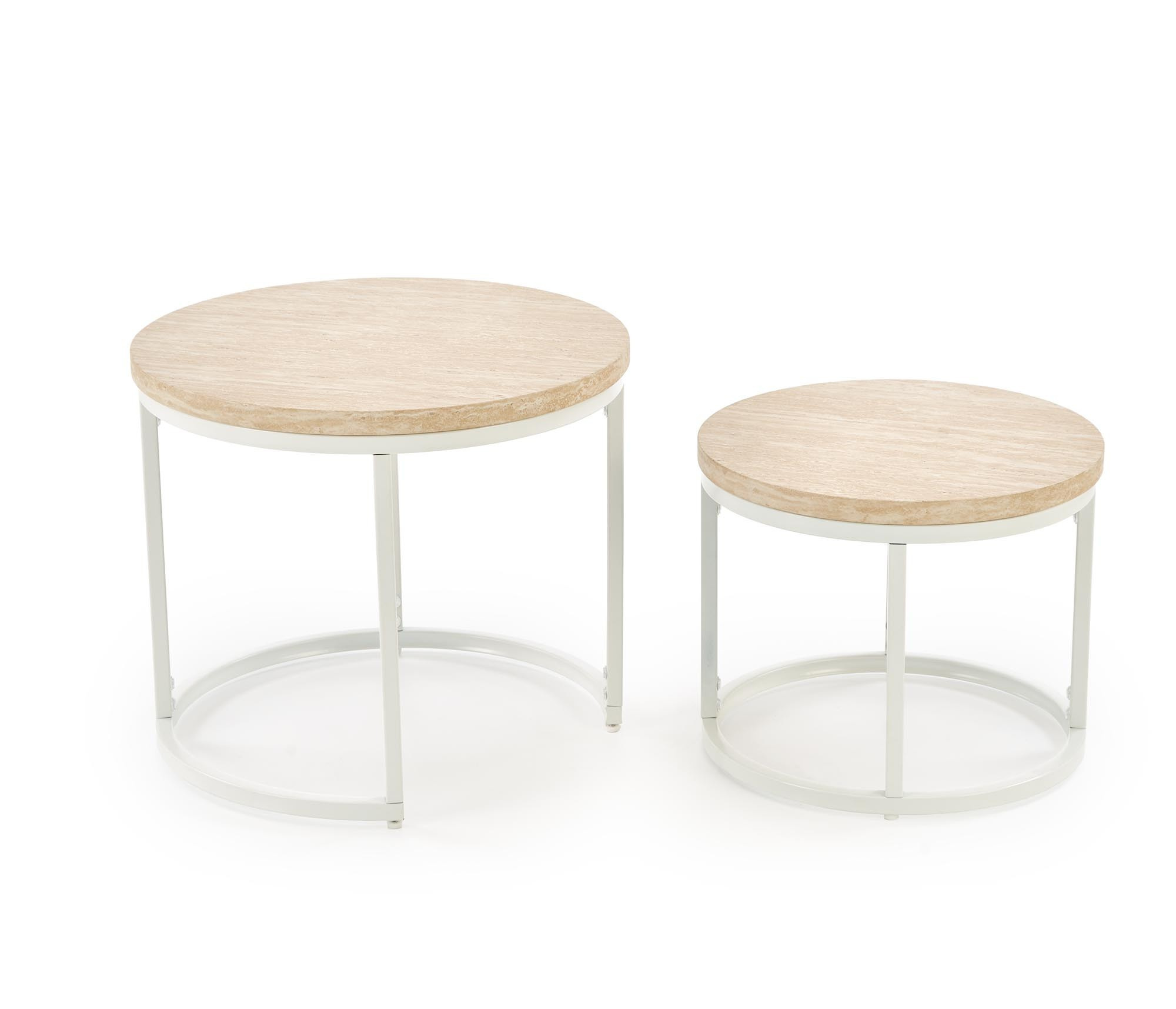 méretek: nagy - fi53/45 cm, kicsi - fi43/35 cm, 2 asztal készlet, anyag: furnérozott MDF / porszórt acél, szín: travertin / fehér