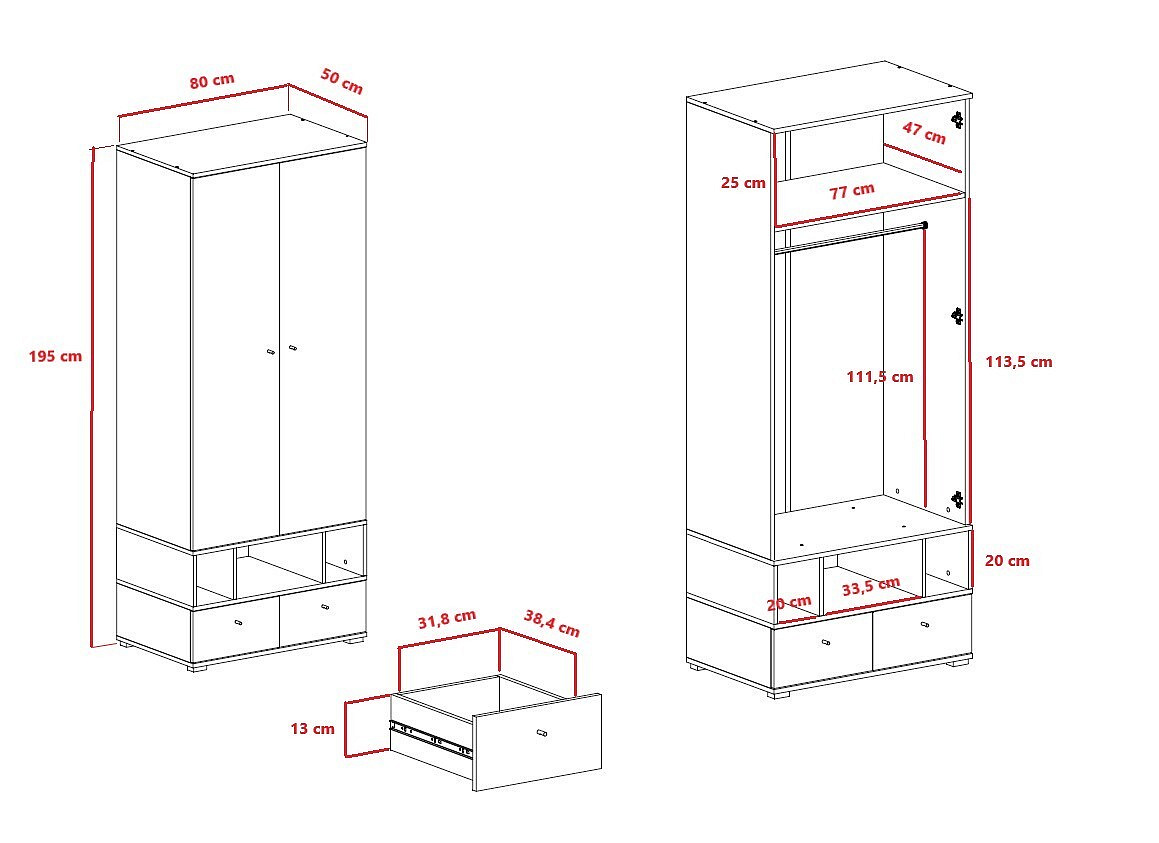 | Szekrénytípus | 2-ajtós szekrény |