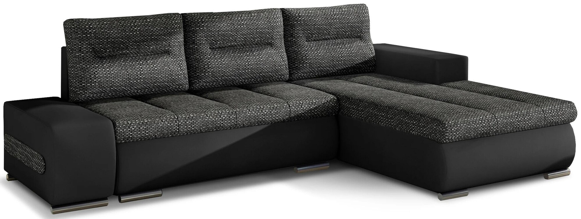 Classic construction, simple form, interesting design and maximum comfort - this is how the Ottavio corner sofa can be described in a few words. The L-shaped piece of furniture with dimensions of 275x180x80 cm has a soft seat made of durable corrugated spring, and flexible T30 foam, thanks to which the corner is very comfortable and flexible, and the body is well supported while resting. In addition, our furniture is equipped with a sleeping function. When unfolded, it transforms into a bed with dimensions of 195 x 135 cm. Contributing to this is the simple and intuitive type of unfolding, which consists of a pull-out bottom and a flip-up backrest. Among the features of the Ottavio corner sofa we can include: ample storage for bedding, an upholstered back and elegant stitching on the seats and backrests. Ottavio is a combination of functionality, comfort and proper style. If you are inspired by a minimalist yet chic style, we invite you to choose the Ottavio corner sofa.