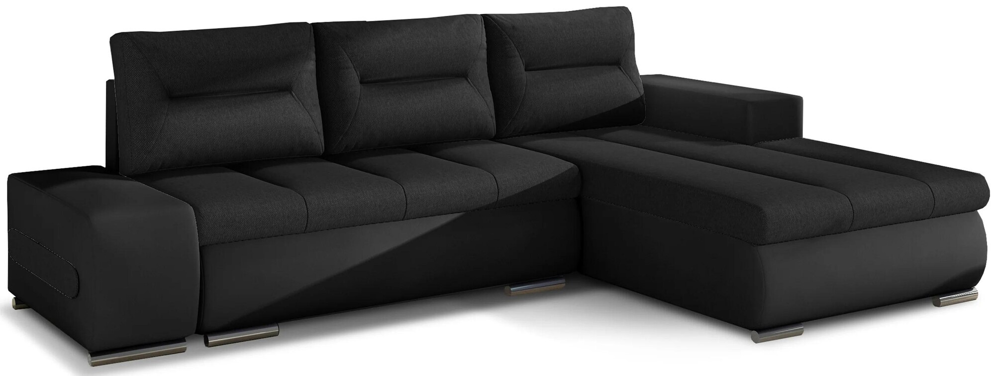 Classic construction, simple form, interesting design and maximum comfort - this is how the Ottavio corner sofa can be described in a few words. The L-shaped piece of furniture with dimensions of 275x180x80 cm has a soft seat made of durable corrugated spring, and flexible T30 foam, thanks to which the corner is very comfortable and flexible, and the body is well supported while resting. In addition, our furniture is equipped with a sleeping function. When unfolded, it transforms into a bed with dimensions of 195 x 135 cm. Contributing to this is the simple and intuitive type of unfolding, which consists of a pull-out bottom and a flip-up backrest. Among the features of the Ottavio corner sofa we can include: ample storage for bedding, an upholstered back and elegant stitching on the seats and backrests. Ottavio is a combination of functionality, comfort and proper style. If you are inspired by a minimalist yet chic style, we invite you to choose the Ottavio corner sofa.