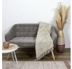 A boho stílusú, természetes pamut illik a természetes, világos belső térbe. Egy finom mintázatú és kellemes tapintású anyagú takaró varázst kölcsönöz a hűvösebb estéken. A tó szélét kövek fejezték be, amelyek bájt kölcsönöznek neki.