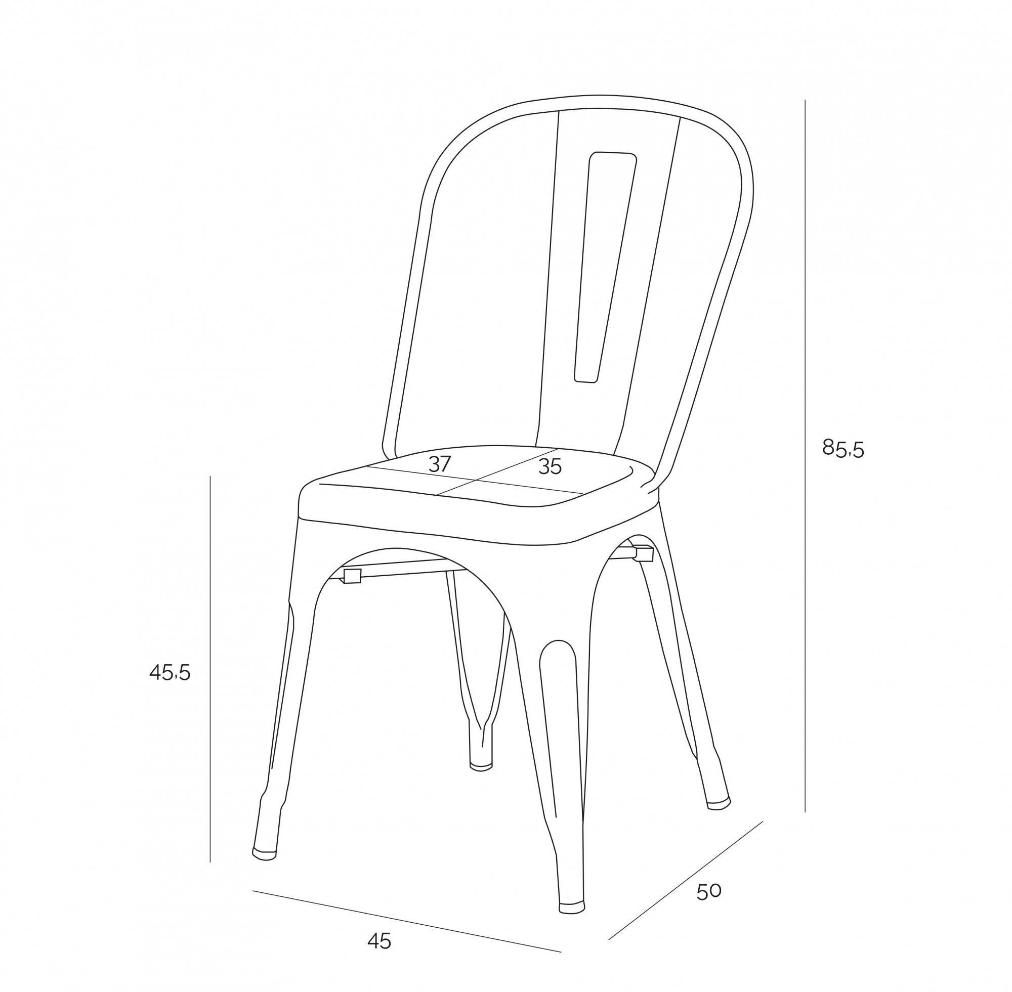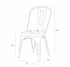 Az ipari Paris Antique szék fémből készült, matt felületkezeléssel. A kényelmes ülés és a stabil, azonos színű alapzat karcolásokkal rendelkezik, amelyek további jelleget kölcsönöznek a bútorok összképének. Az ipari stílusú székek remekül illenek a nyers, loft jellegű enteriőrökbe, de az eklektikus terekbe is. A szék maximális terhelhetősége 120 kg. A szék rakásolható, összeszerelést igényel, nem alkalmas kültéri használatra, súlya kb.6kg Mag. ülések: 45,5 cm mély ülések: 35 cm szélesség ülések: 37 cm Max. darabszám kartonban: 3 Karton méretei: 61cm x 61cm x 112cm