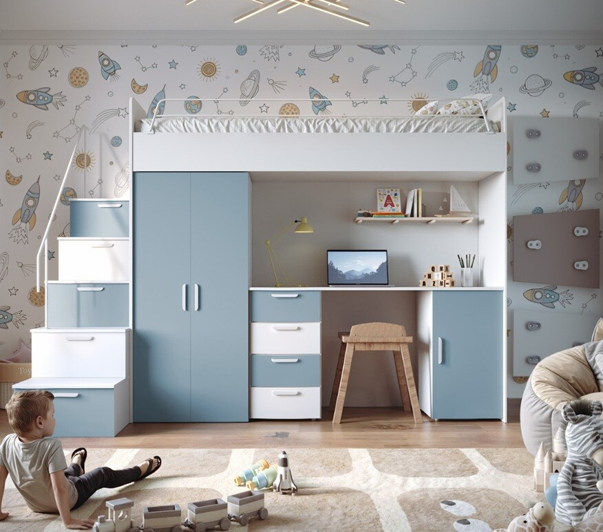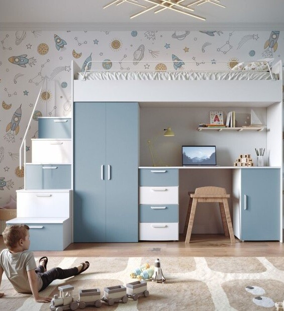 Patrová postel PARADISE 4S Bílá Modrá mat