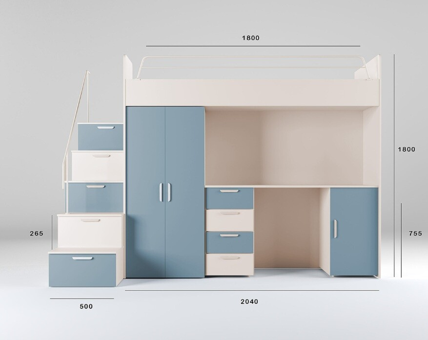 Celkové rozměry postele jsou 86 cm na šířku, 180 cm na výšku a 254 cm na délku. Tyto rozměry zajišťují, že postel poskytuje dostatek prostoru pro pohodlný spánek, zatímco její patrová konstrukce šetří místo v pokoji. Je ideální volbou pro menší pokoje, kde je potřeba efektivně využít každý centimetr.
