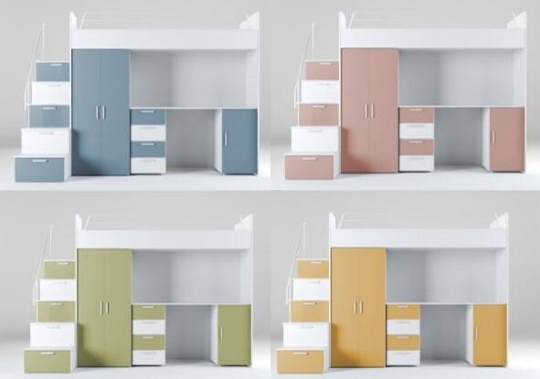 Patrová postel PARADISE 4S je vyrobena z kvalitního lamina, které zajišťuje dlouhou životnost a odolnost. Její povrch v bílém + doplňující barvy dodává pokoji jemný a moderní vzhled, který potěší nejen děti, ale i dospělé. Díky svému elegantnímu designu se snadno stane dominantním prvkem každého interiéru.