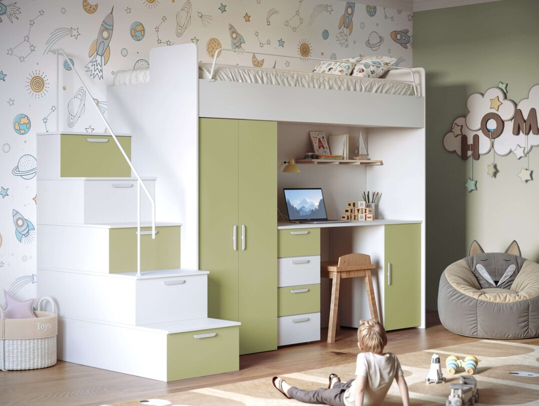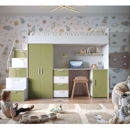Patrová postel PARADISE 4S Bílá Zelená Oliva mat