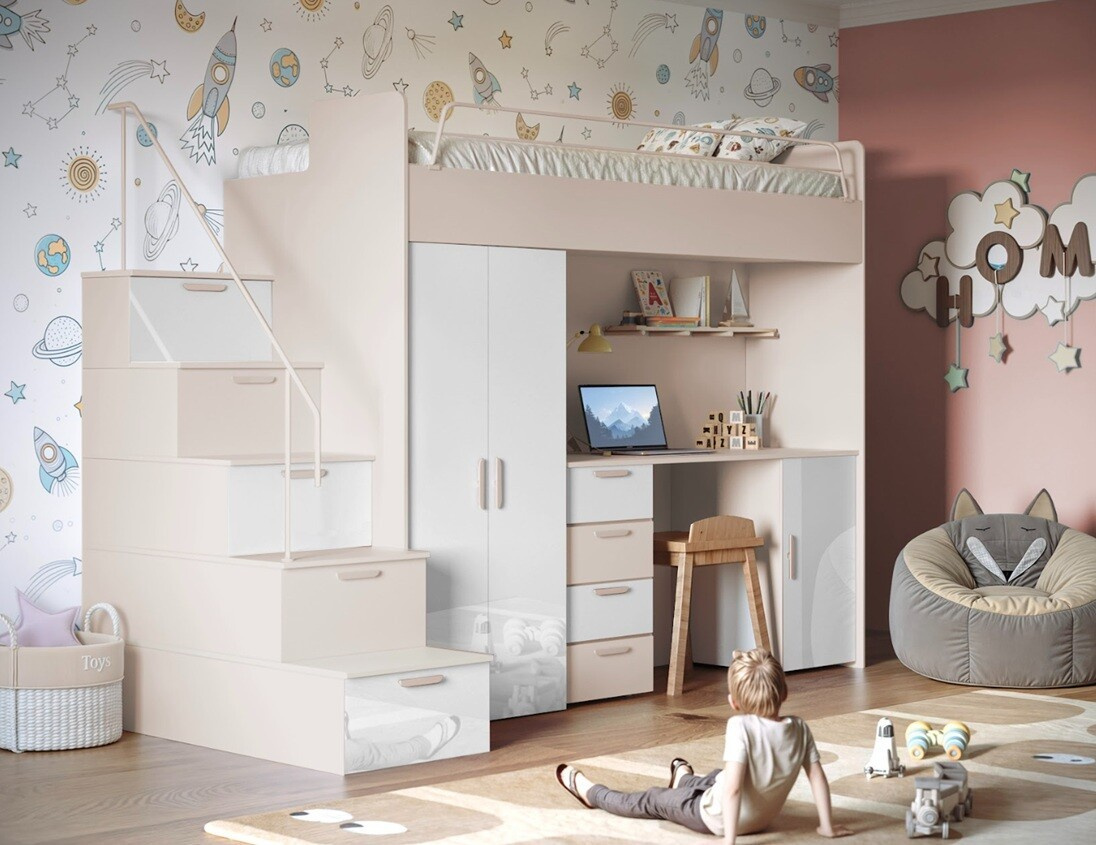 Patrová postel PARADISE 4S Kašmír + Lesk je skvělou volbou pro každého, kdo hledá stylové a praktické řešení pro dětský pokoj. Její moderní design, kvalitní materiály a praktické vlastnosti z ní činí ideální investici do pohodlí a estetiky vašeho domova.
