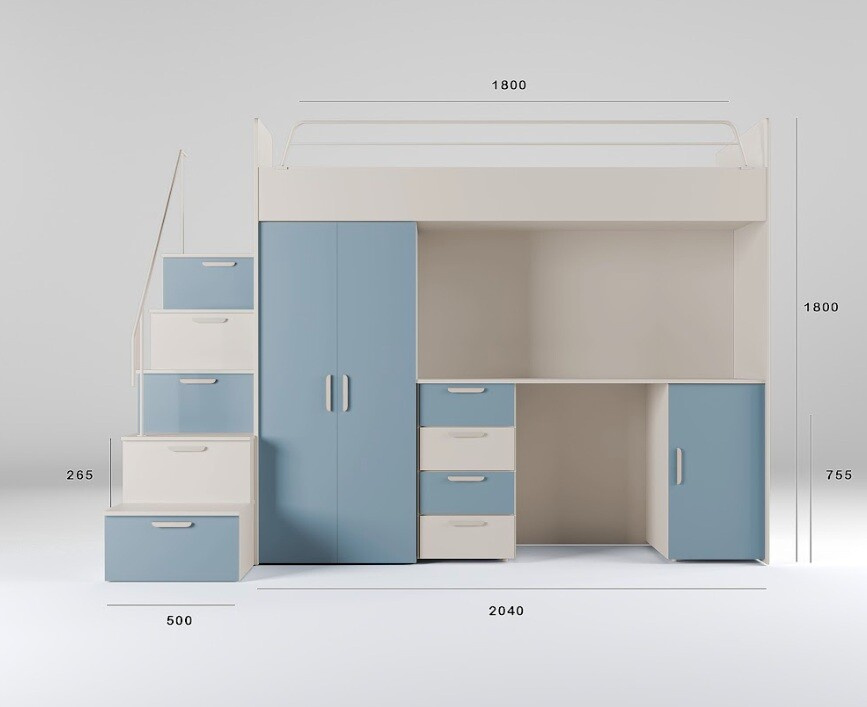 Celkové rozměry postele jsou 86 cm na šířku, 180 cm na výšku a 254 cm na délku. Tyto rozměry zajišťují, že postel poskytuje dostatek prostoru pro pohodlný spánek, zatímco její patrová konstrukce šetří místo v pokoji. Je ideální volbou pro menší pokoje, kde je potřeba efektivně využít každý centimetr.