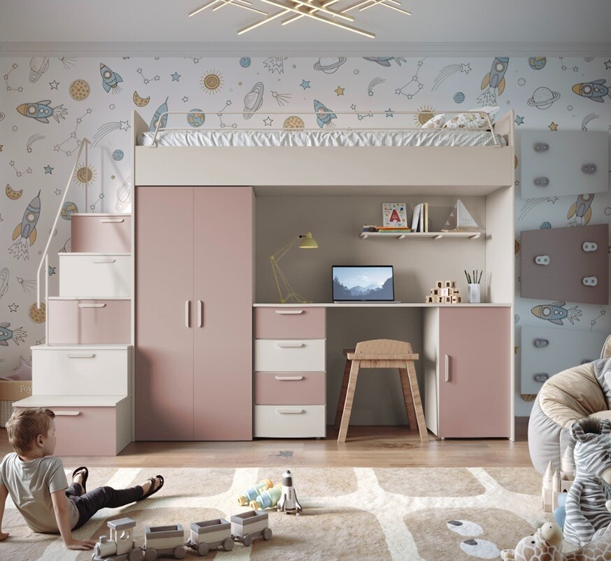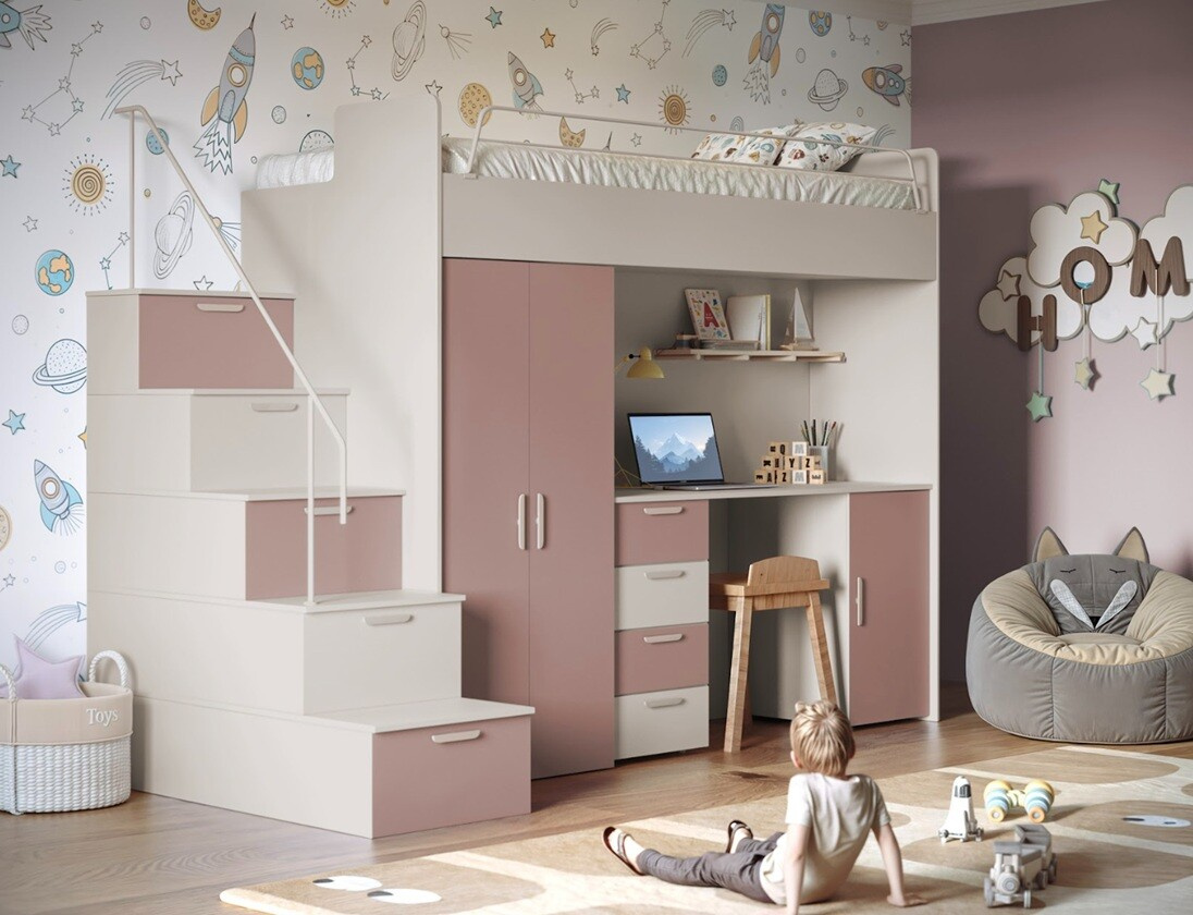 Objevte kouzlo a praktičnost patrové postele PARADISE 4S v elegantním kašmírovým matu, která se stane středobodem každého dětského pokoje. Tato postel je ideálním řešením pro ty, kteří hledají kombinaci stylu, funkčnosti a úspory prostoru.