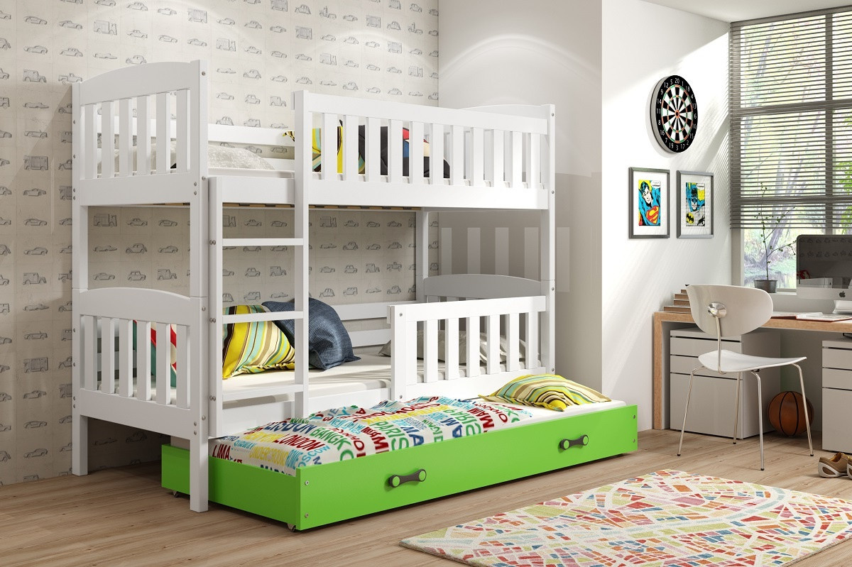 Patrová postel s přistýlkou Kuba bílá/zelená