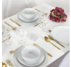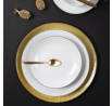 Klasszikus fehér porcelán finom arany szegéllyel, amely kiemeli a tányér klasszikus formájának szépségét. Gazdagítsd asztalterítékedet a Pear Gold tányérok eleganciájával. A Pearl Gold tányérok lapos és mély változatban kaphatók. Fő összetétel: Porcelán. A tányér nem alkalmas mosogatógépbe. A csomag méretei 31,00 x 29,00 x 30,00