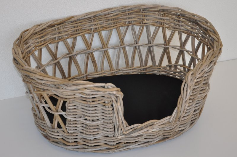 Pelech pro pejska vyrobený z přírodního ratanu kubu v přírodní šedé barvě. | Velikost pelechu je 73x55x35 cm Pelech dodáváme s vnitřní poduškou v černé barvě.
