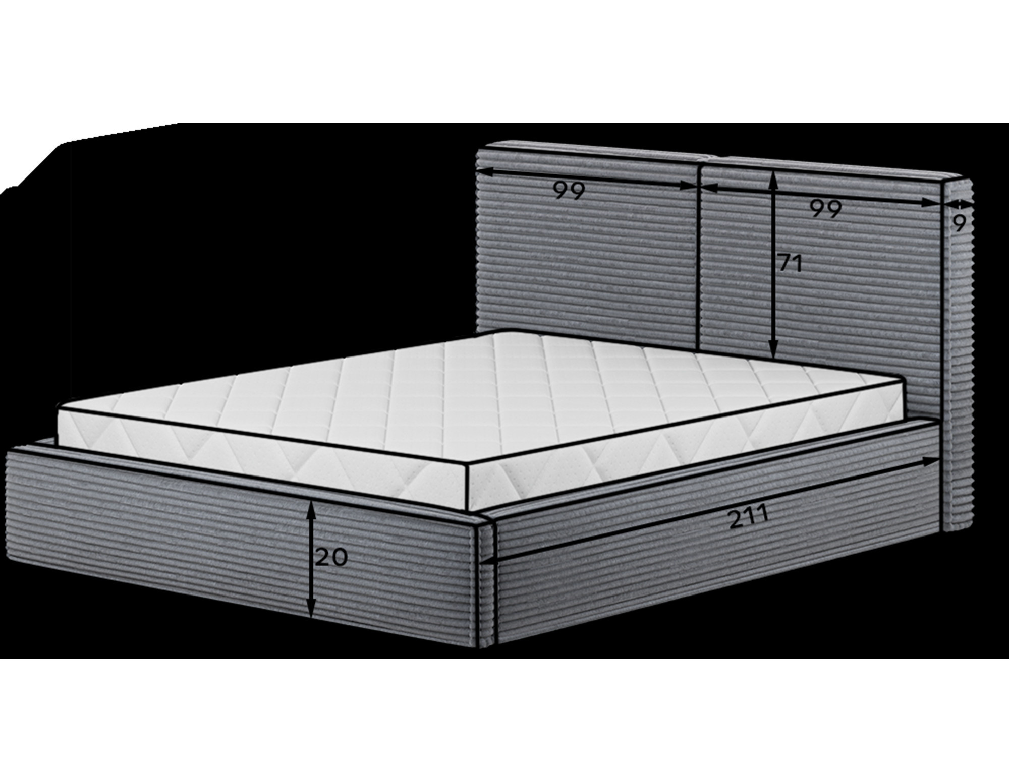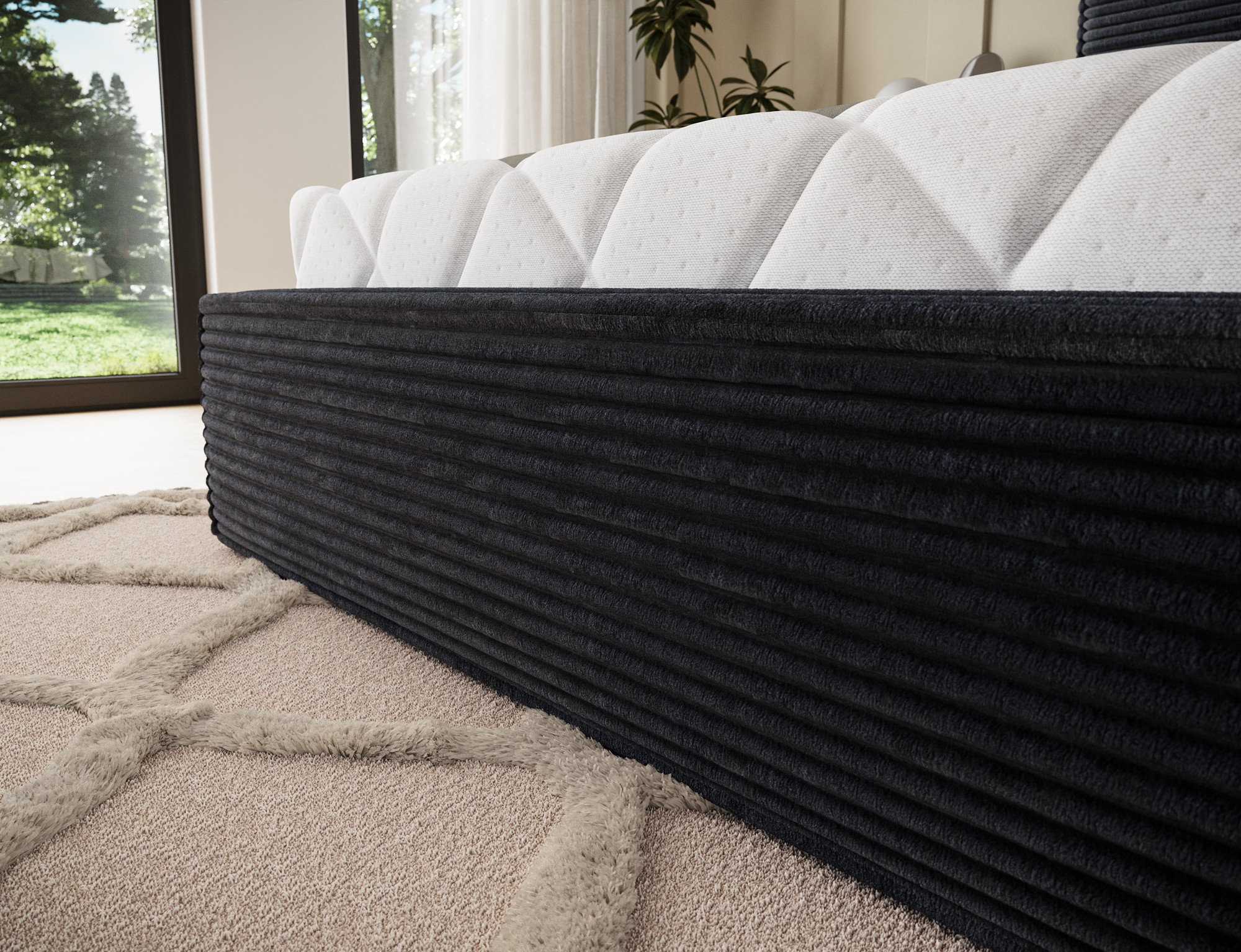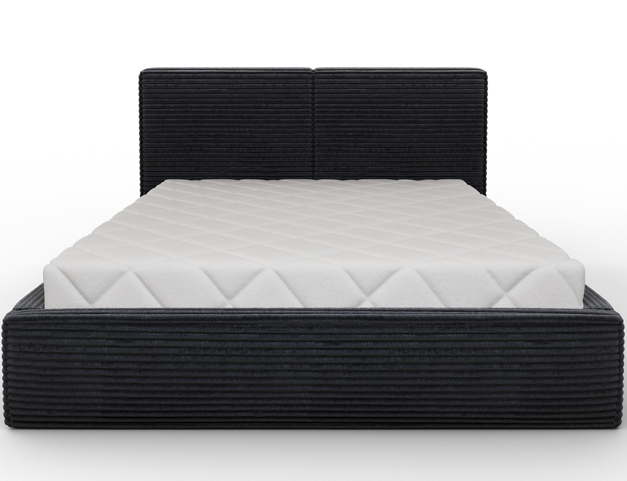 The Pesillo bedroom bed combines elegance and functionality in a modern design. The model is available in three size variants: 140x200 cm, 160x200 cm, and 180x200 cm, allowing you to perfectly match the bed to your bedroom’s dimensions and your individual needs. The total height of the bed is 103 cm, while its depth measures 220 cm. The width depends on the selected model and is 158 cm, 178 cm, or 198 cm respectively. The T2130 foam filling ensures comfort and durability, while the sturdy black plastic furniture legs provide stability and a refined finish. The Pesillo bed features a practical bedding container, allowing for efficient use of space and easy organization. Designed in a modern style, it perfectly fits current interior design trends, creating a cozy and elegant atmosphere ideal for relaxation.