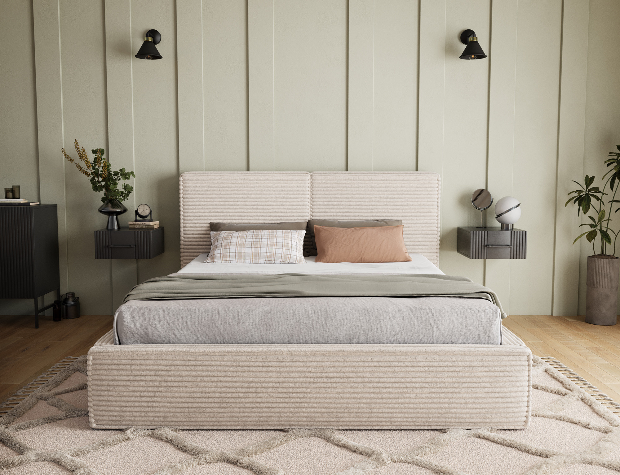 The Pesillo bedroom bed combines elegance and functionality in a modern design. The model is available in three size variants: 140x200 cm, 160x200 cm, and 180x200 cm, allowing you to perfectly match the bed to your bedroom’s dimensions and your individual needs. The total height of the bed is 103 cm, while its depth measures 220 cm. The width depends on the selected model and is 158 cm, 178 cm, or 198 cm respectively. The T2130 foam filling ensures comfort and durability, while the sturdy black plastic furniture legs provide stability and a refined finish. The Pesillo bed features a practical bedding container, allowing for efficient use of space and easy organization. Designed in a modern style, it perfectly fits current interior design trends, creating a cozy and elegant atmosphere ideal for relaxation.