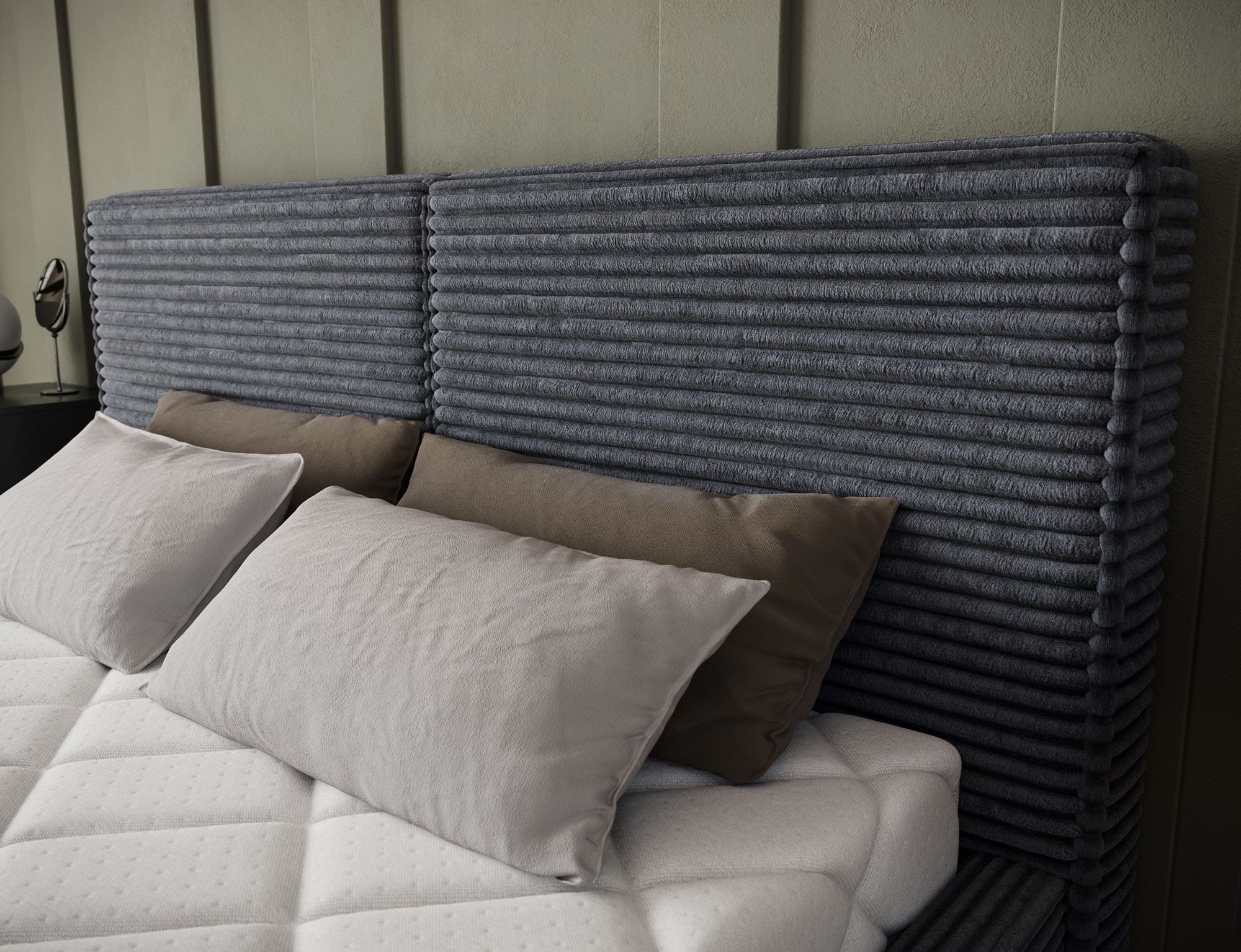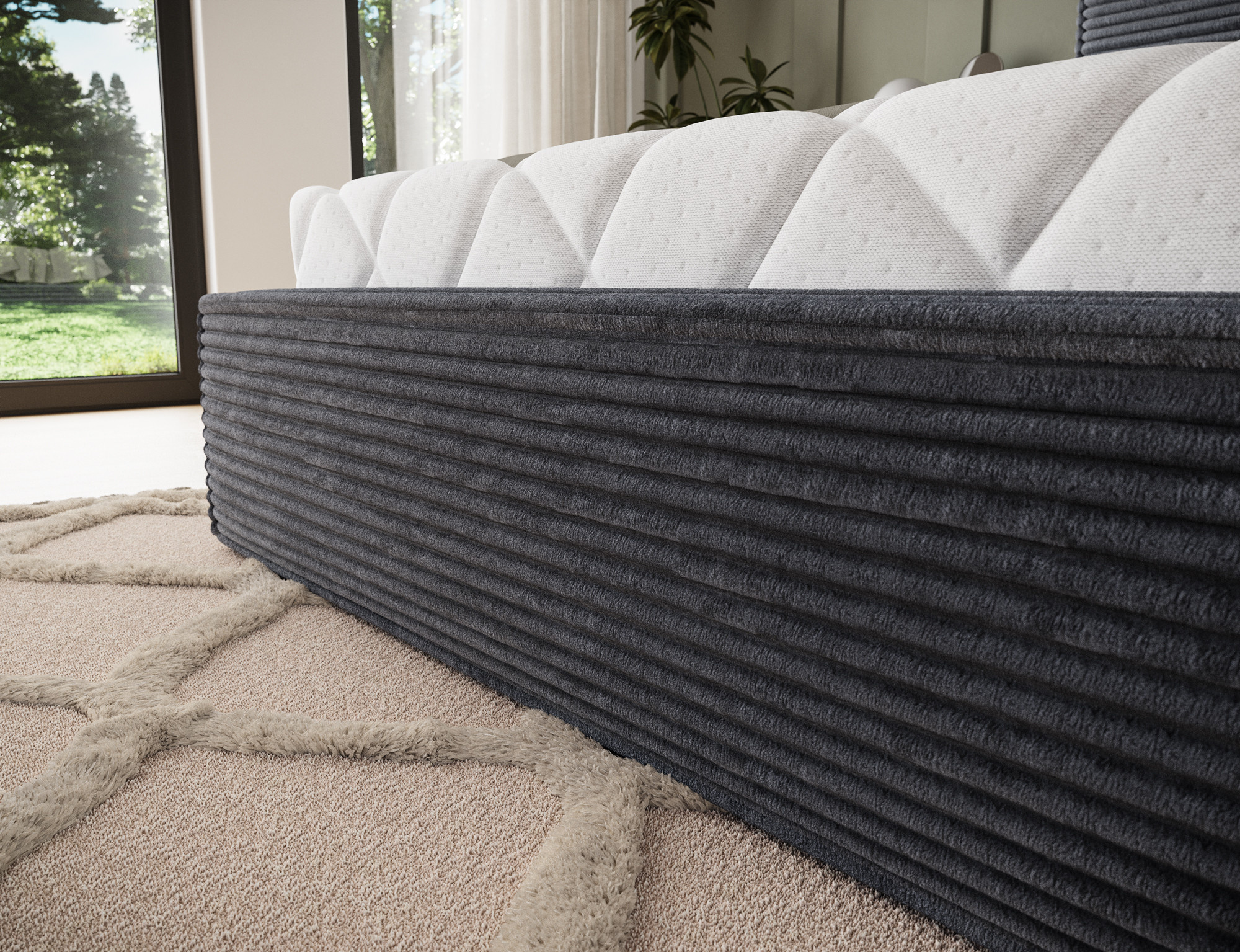 The Pesillo bedroom bed combines elegance and functionality in a modern design. The model is available in three size variants: 140x200 cm, 160x200 cm, and 180x200 cm, allowing you to perfectly match the bed to your bedroom’s dimensions and your individual needs. The total height of the bed is 103 cm, while its depth measures 220 cm. The width depends on the selected model and is 158 cm, 178 cm, or 198 cm respectively. The T2130 foam filling ensures comfort and durability, while the sturdy black plastic furniture legs provide stability and a refined finish. The Pesillo bed features a practical bedding container, allowing for efficient use of space and easy organization. Designed in a modern style, it perfectly fits current interior design trends, creating a cozy and elegant atmosphere ideal for relaxation.