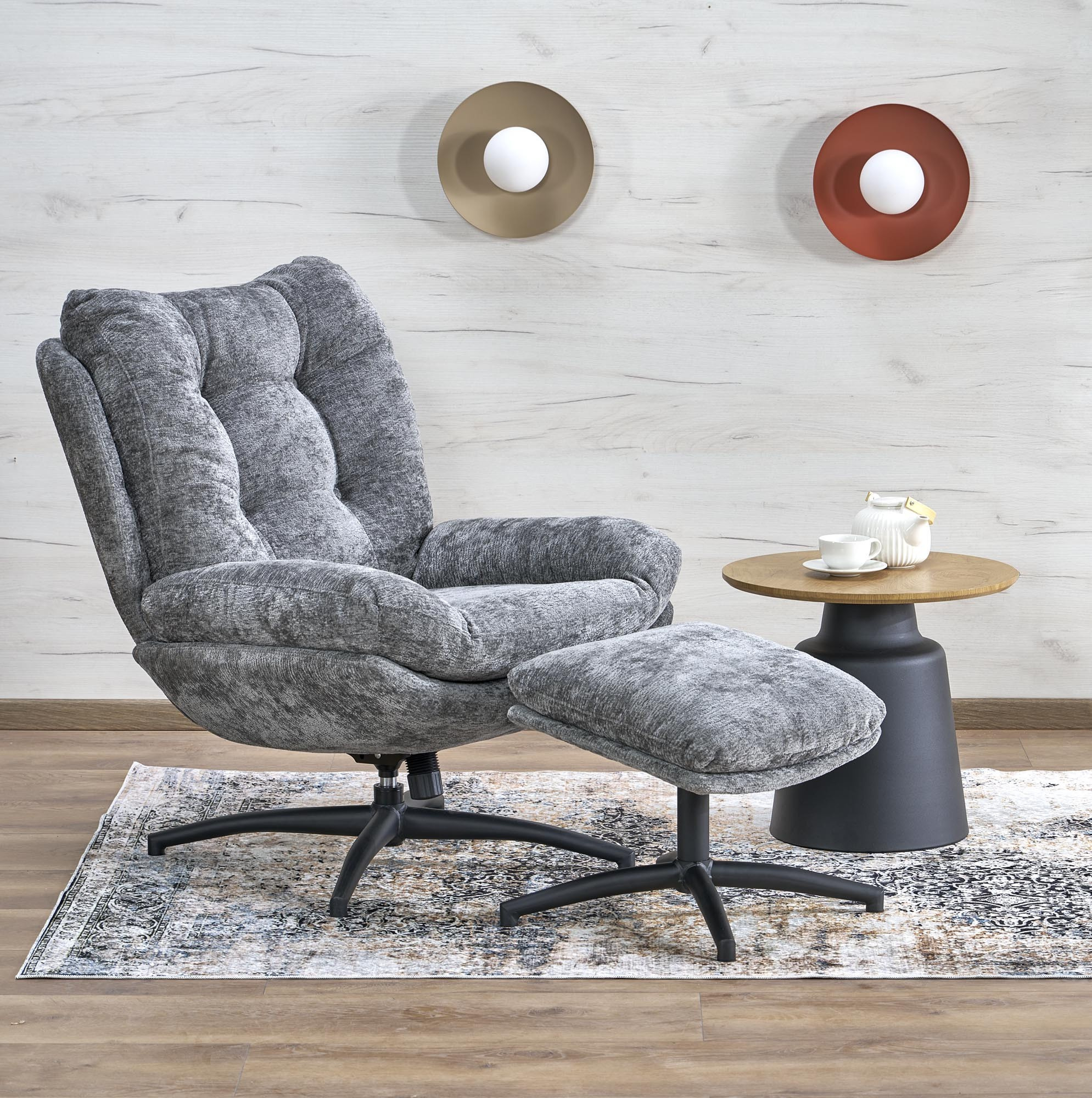 fotel lábtartóval / hintázó funkció, anyag: szövet, szín: hamuszürke