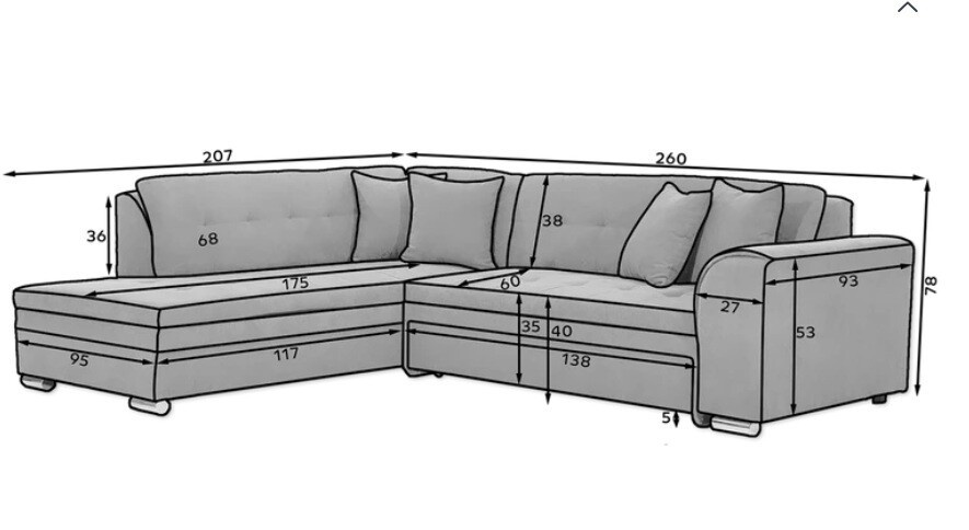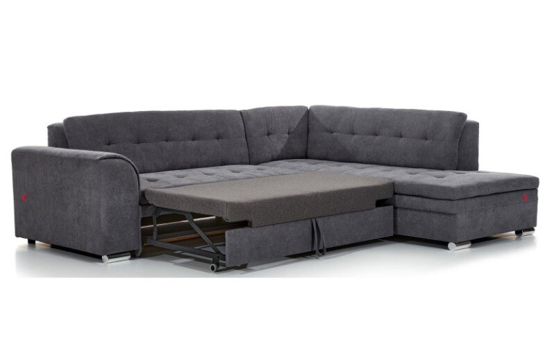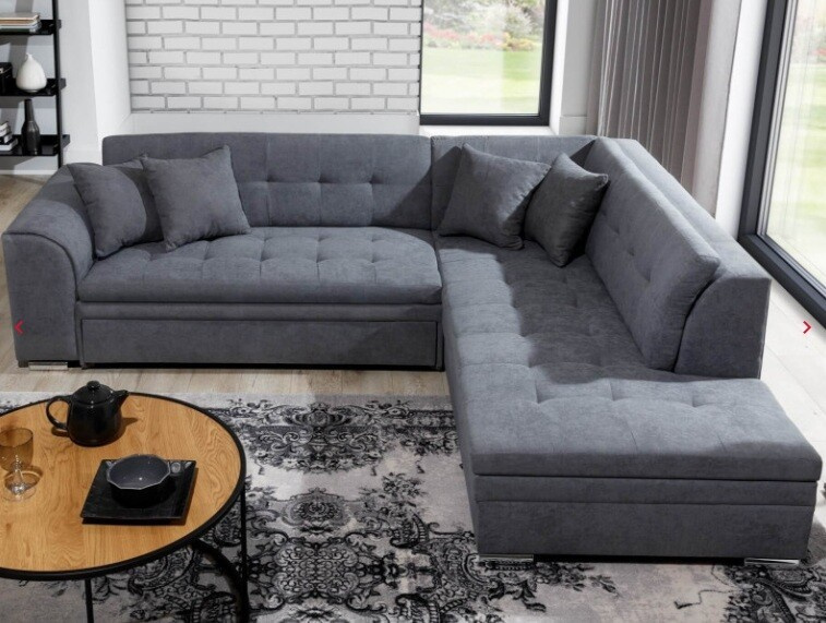Pieretta is a multifunctional, yet elegant and spacious corner sofa made in classic style. It is a high-quality piece of furniture with a wide seat with filling created from a combination of corrugated spring and T30 foam.Behind Pieretta with dimensions of 260 x 205 x 80 cm, there is not only comfort, but also well-slept nights through an exceptionally large sleeping surface. The dolphin folding type allows you to easily and effortlessly unfold the sofa, enriching it with the function of a spacious bed with dimensions of 200 x 126 cm.The maximum effect of perceived comfort is influenced, among other things, by the soft seat, slanted contoured armrest, large cushions included in the set, as well as chrome oval legs and contoured backrest with elegant quilting. If you are curious about what else the Pieretta corner sofa has to offer - feel free to choose a piece of furniture from Eltap.