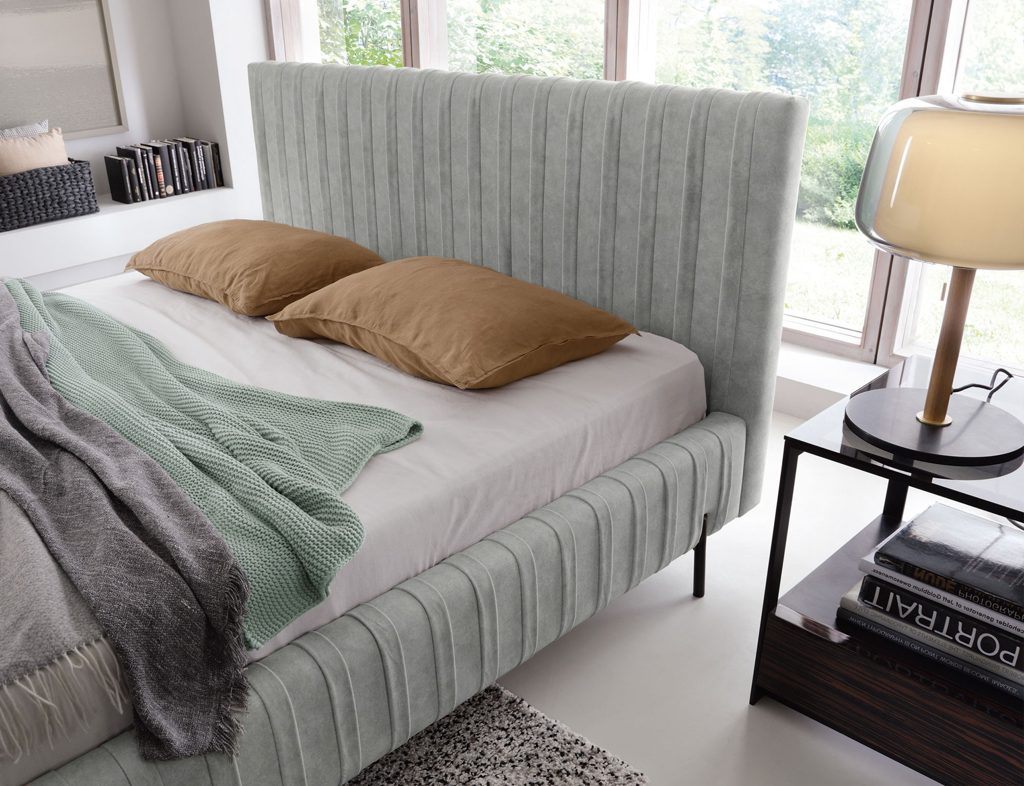 Plissa is a unique upholstered bed that delights with its modern design and functionality. It has a sturdy metal frame under the mattress and metal legs that provide stability and durability. The bed is sold without a mattress. Its practical bedding container allows for convenient storage of bedding and other items, making it an ideal solution for those who value functionality in their bedroom. Plissa is not only a bed but also a stylish decorative element that adds elegance to any interior.