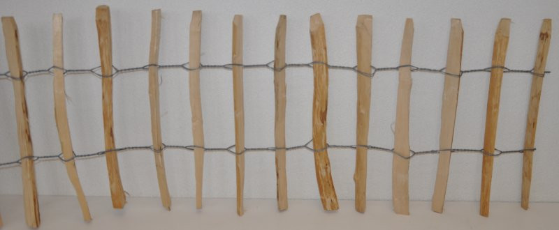 Plůtek ze štípaného dřeva svázaný silným ocelovým drátem. | Výška plotu je 50 cm. Délka plotu je 5 metrů.