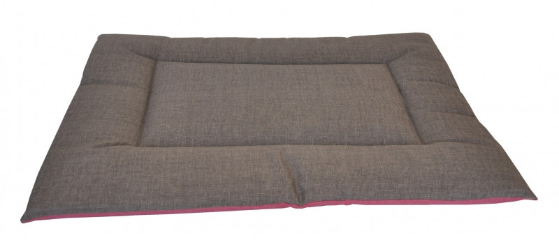 Oboustranná podložka pro pejska. | Barva podložky je z jedné strany šedá, z druhé strany malinová. Podložka je vyplněna dutým polyesterovým antialergenním dutým vláknem. Velikost podložky je 80x60 cm. Tloušťka podložky je 5 cm.