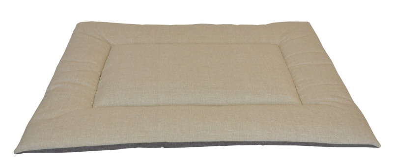 Oboustranná podložka pro pejska. | Barva podložky je z jedné strany šedá, z druhé strany béžová. Podložka je vyplněna dutým polyesterovým antialergenním dutým vláknem. Velikost podložky je 80x60 cm. Tloušťka podložky je 5 cm.