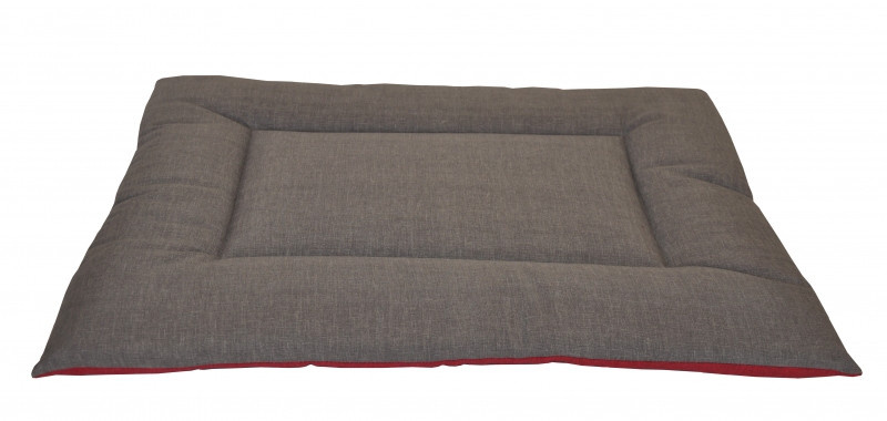 Oboustranná podložka pro pejska. | Barva podložky je z jedné strany šedá, z druhé strany vínová. Podložka je vyplněna dutým polyesterovým antialergenním dutým vláknem. Velikost podložky je 80x60 cm. Tloušťka podložky je 5 cm.