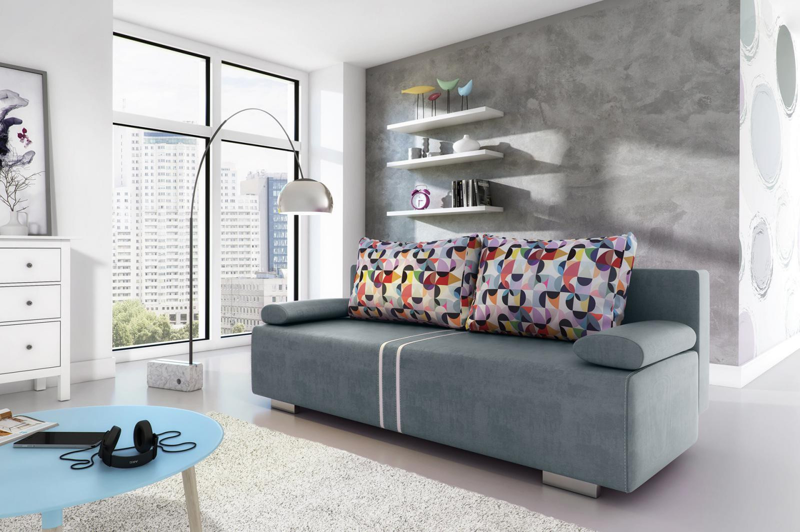 Moderní rozkládací pohovka s úložným prostorem. Výplň pohovky tvoří pružiny bonell v kombinaci s kvalitní PUR pěnou. Jednoduchým rozkladem pomocí automatu vznikne lůžko vhodné k příležitostnému spaní. Pohovku dodáváme v několika barevných provedeních, které také naleznete v naší nabídce.
