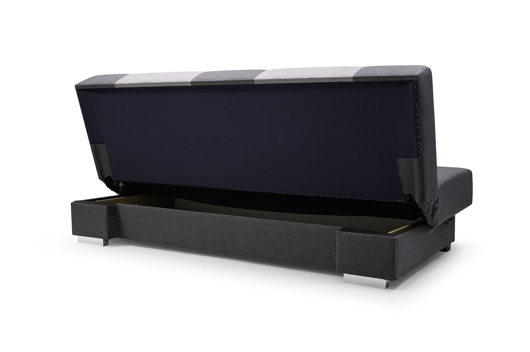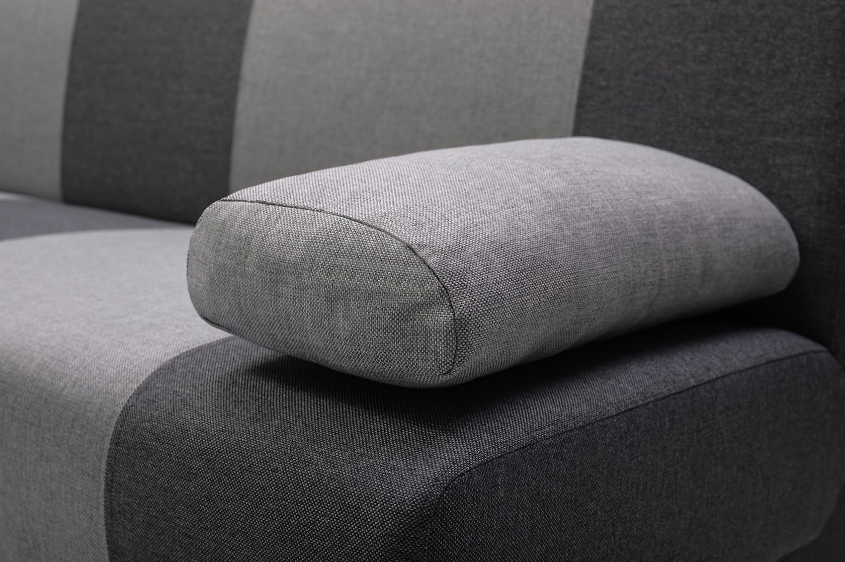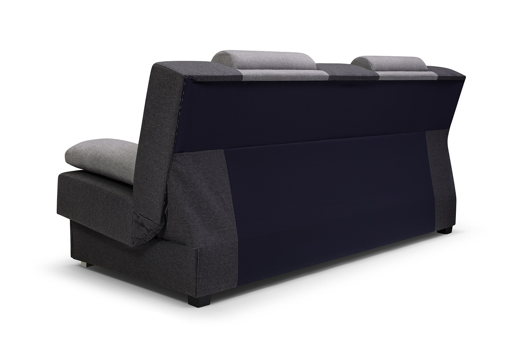 Pohovka ANTONIO je moderní kousek, který se bude skvěle vyjímat v obývacím pokoji zařízeném v moderním stylu. Pohovka je čalouněná látkou, která je k dispozici v široké škále barev, z nichž si můžete vybrat. Zadní část pohovky je rovněž čalouněná - pohovka je volně stojící kus nábytku. Model ANTONIO bez bočnic má mimořádně estetický a moderní vzhled, takže ho nikdo nepřejde lhostejně. Pohovka je vybavena funkcí spaní a prostorným úložným prostorem na lůžkoviny, který nám pomůže udržet v pokoji pořádek. Dřevěný rám pohovky kontrastuje s chromovanými nohami, které podtrhují výjimečně originální charakter nábytku. ANTONIO je pohovka, která je pro zvýšení pohodlí vybavena nastavitelnými opěrkami hlavy - ty lze nastavit podle individuálních preferencí. Dvoubarevná pohovka, zakončená širokými svislými pruhy, je vyplněna vlnitou pružinou a pěnou T-30 - materiály, které zaručují správnou pevnost sedáku; nedeformuje se a zároveň poskytuje pohodlné sezení. Takto uspořádaná pohovka bude v industriálním prostoru vypadat dokonale.