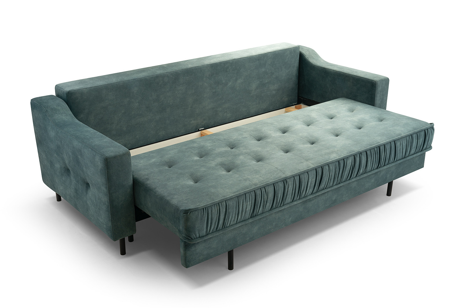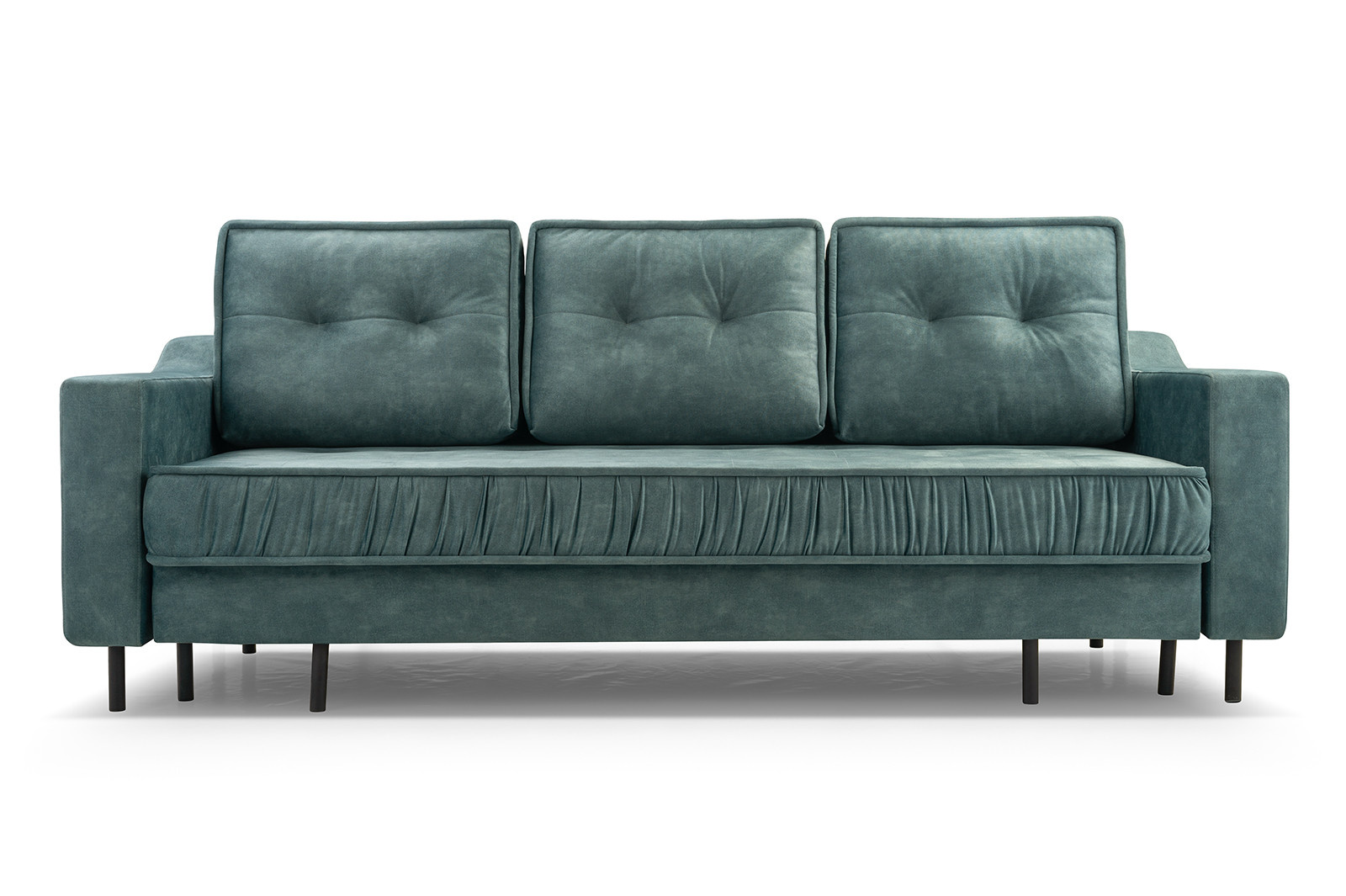 Moderní pohovka s úložným prostorem. Pohodlné sezení Vám zajistí kombinace pružin falistých a bonellu s kvalitní PUR pěnou. Jednoduchým rozkladem vznikne lůžko vhodné k příležitostnému spaní. Pohovku dodáváme v několika barevných provedeních, které také naleznete v naší nabídce.