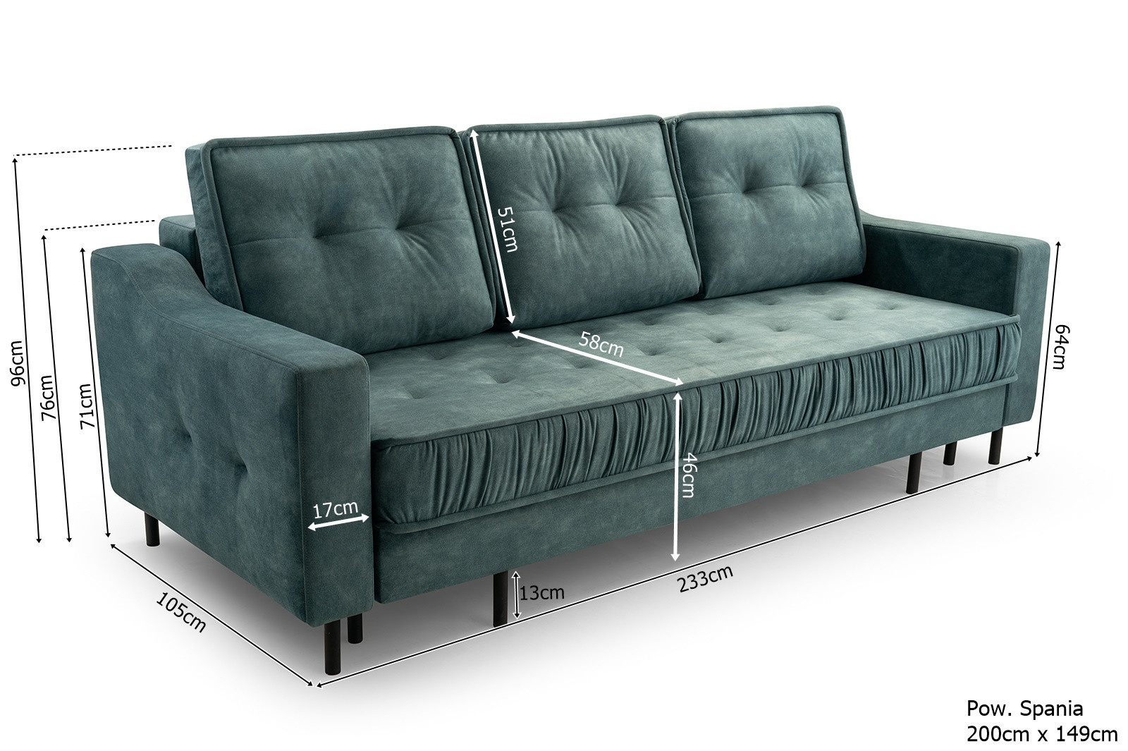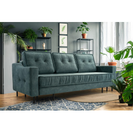 Moderní pohovka s úložným prostorem. Pohodlné sezení Vám zajistí kombinace pružin falistých a bonellu s kvalitní PUR pěnou. Jednoduchým rozkladem vznikne lůžko vhodné k příležitostnému spaní. Pohovku dodáváme v několika barevných provedeních, které také naleznete v naší nabídce.